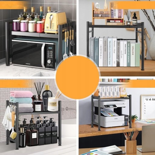 PÓŁKA REGULOWANA PODWÓJNA STOJAK DO KUCHNI NA MIKROFALÓWKĘ CZARNY