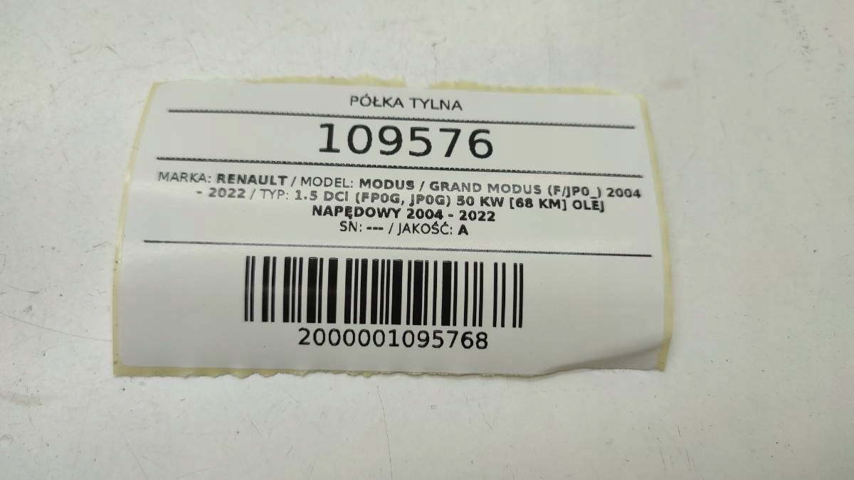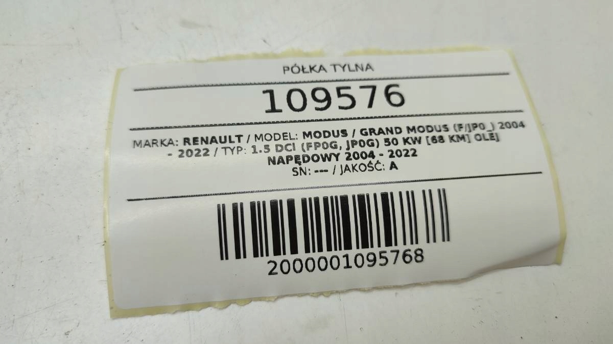 PÓŁKA TYLNA TYŁ BAGAŻNIKA RENAULT GRAND MODUS LIFT