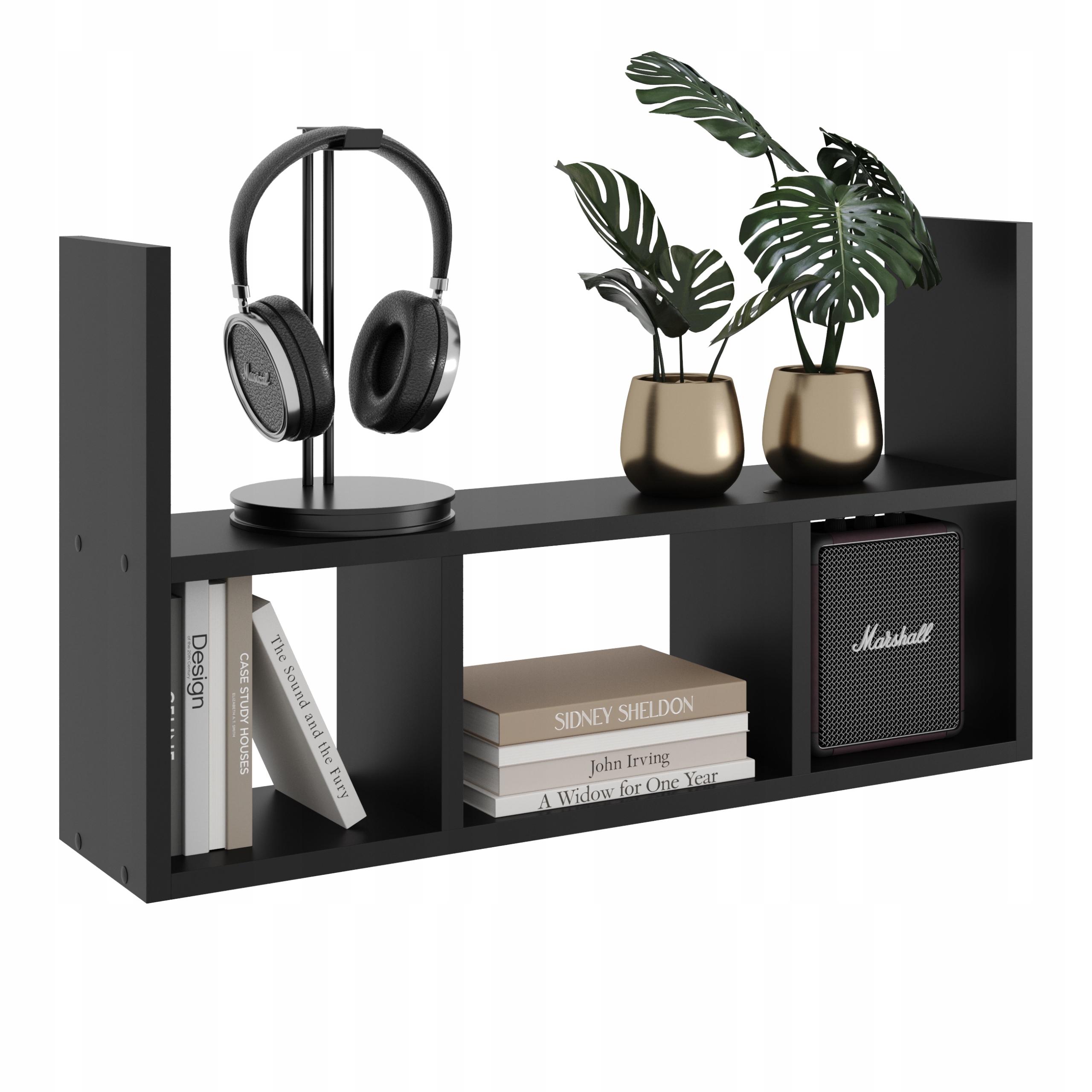 PÓŁKA WISZĄCA REGAŁ NA KSIĄŻKI SZAFKA ŚCIENNA DO PRZEDPOKOJU CZARNA 1
