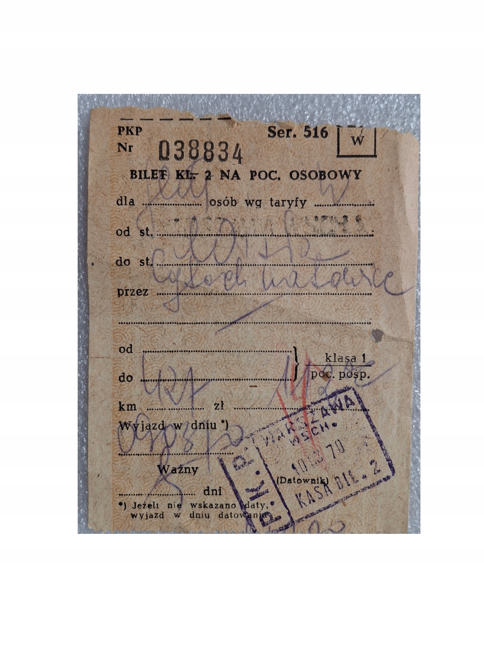 PKP Ticket -Warszawa Eastern 1970