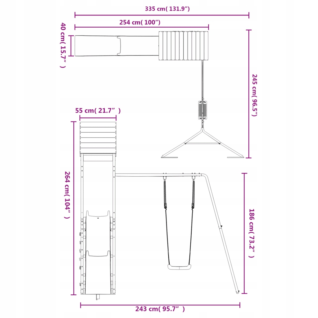 Plac zabaw do ogrodu, lite drewno sosnowe