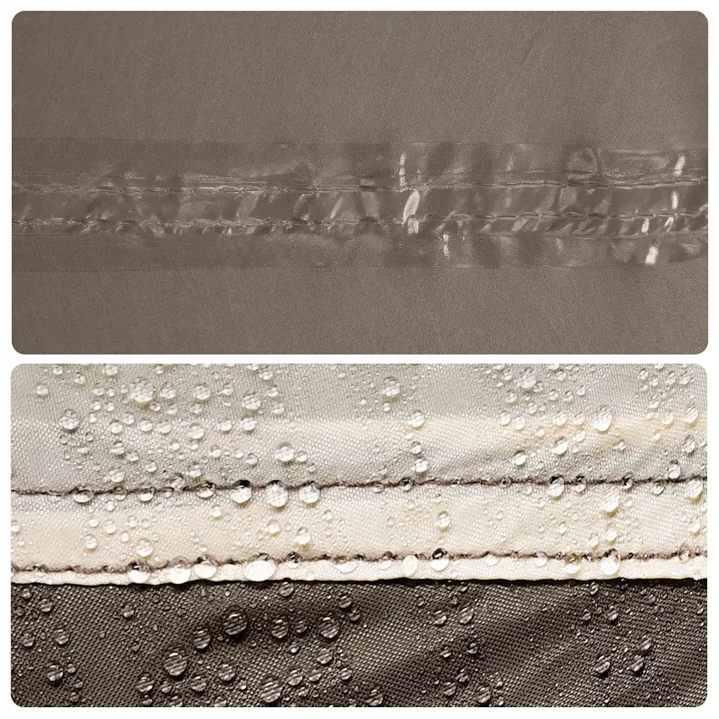 - Прочный материал из тафты: этот брезент, изготовленный из тафты с полиуретановым покрытием, является водонепроницаемым и ветронепроницаемым. Проклеенные швы эффективно предотвращают проникновение дождевой воды, сохраняя сухую и комфортную среду.