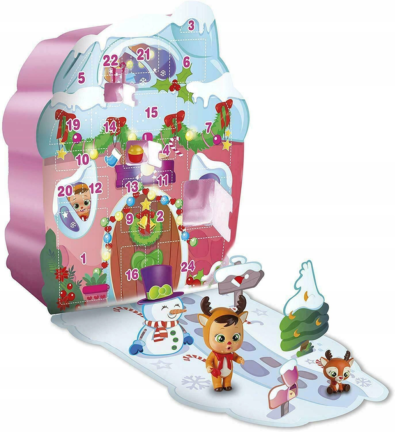 Авент-календарь Cry Babies Magic Tears Адвент-календарь Рути Cry Babies Magic Tears Адвент-календарь! Откройте вместе с Рути целых 24 рождественских сюрприза, которых вы не найдете ни в одном другом наборе! В раскрытом виде календарь представляет собой еще и трехмерную декорацию (некоторые элементы можно сгибать благодаря изгибам и вырезам в материале, например, елку или почтовый ящик). Создавайте новые игровые сценарии зимой и праздничные обстановки вместе с куклой Рут, которая плачет настоящими слезами! В комплект входят:
