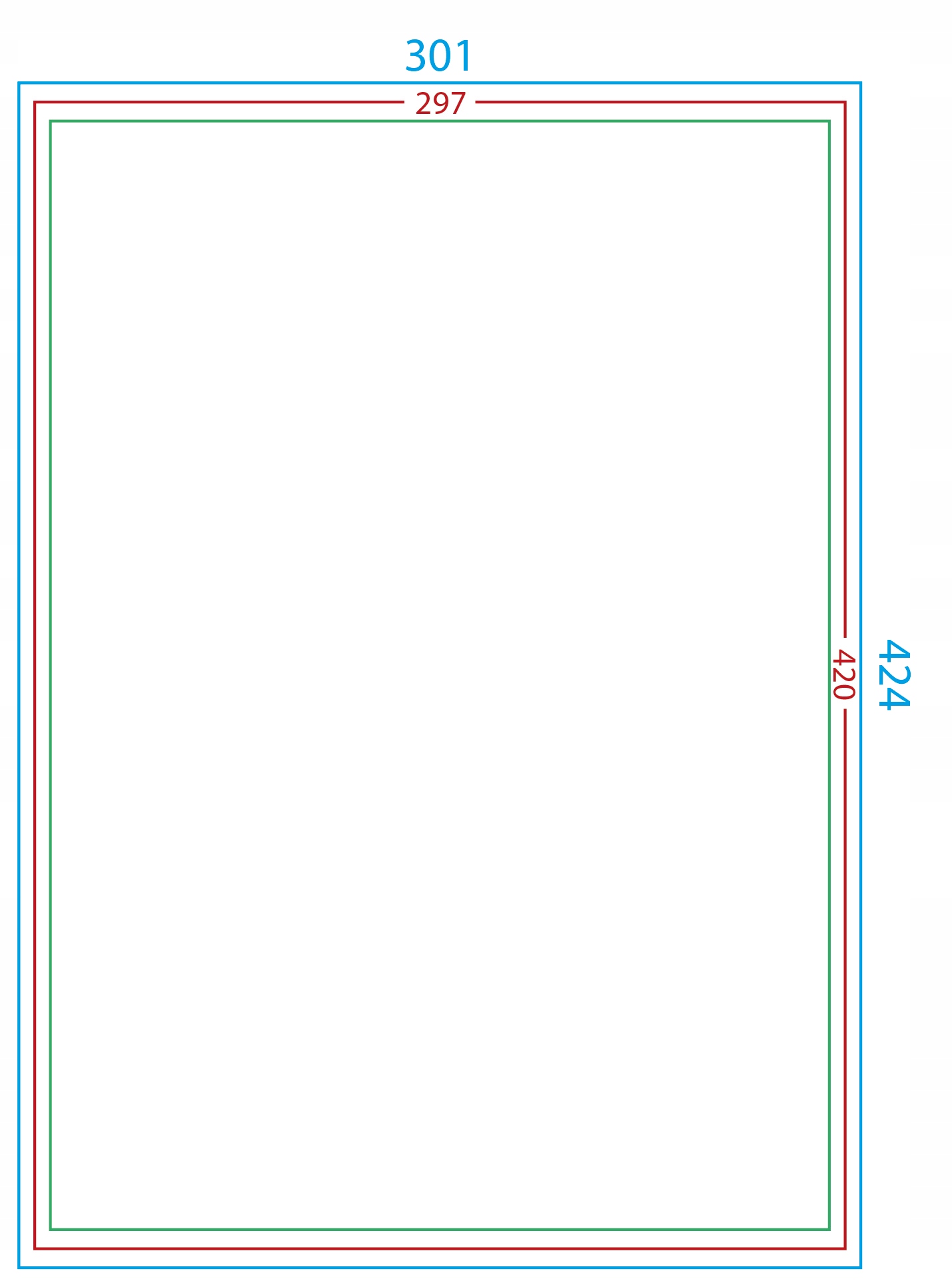 - Вылет за обрез на 2 мм с каждой стороны плаката — весь фон должен доходить до края рисунка (синяя линия)