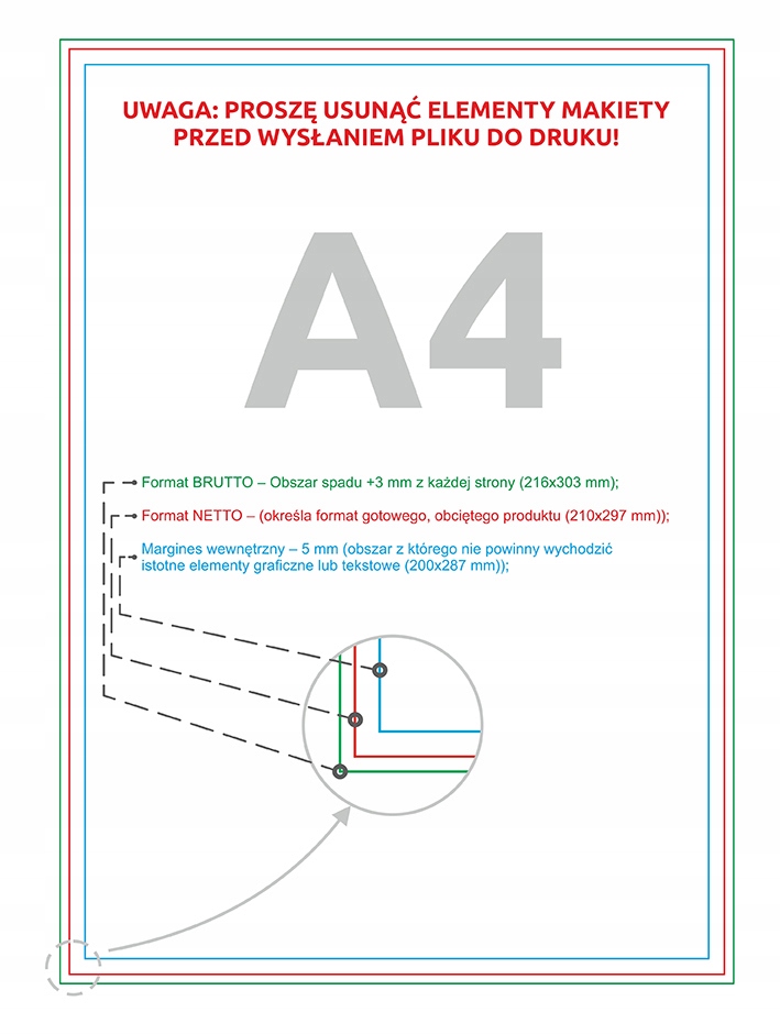 Помните, что все важные элементы (текст, логотип) должны быть расположены минимально. 5 мм от края, чтобы избежать сокращения во время производственного процесса.