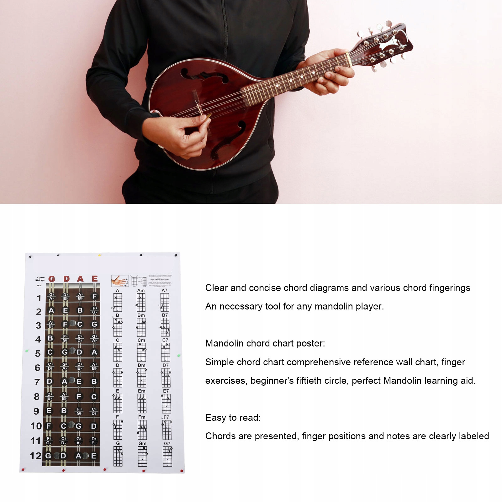 🎼 Плакат с таблицей аккордов на мандолине: Подробный справочный плакат с простыми таблицами аккордов для упражнений для пальцев, обучение для начинающих и отличное подспорье для изучающие мандолину.