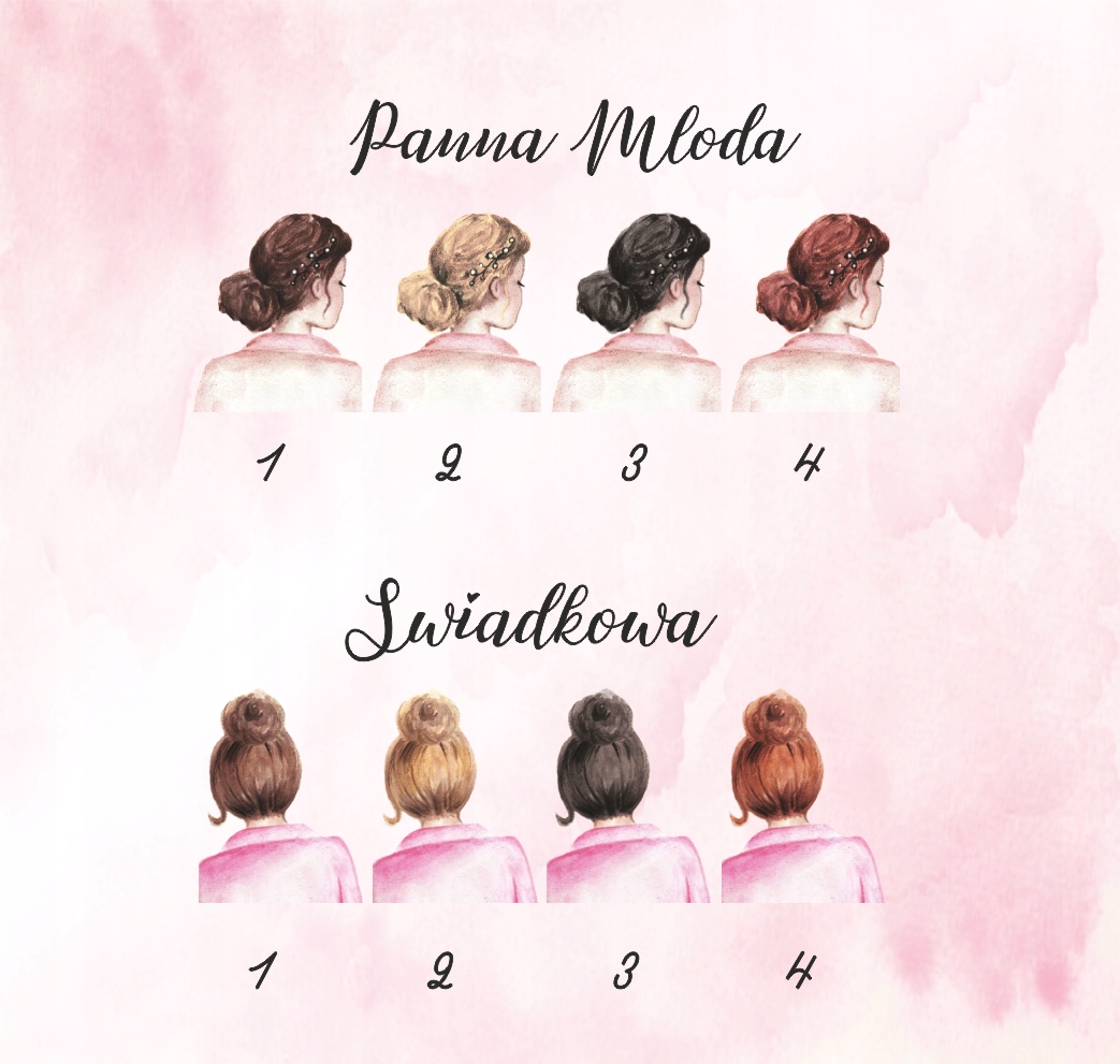 - цвет волос, пожалуйста, выберите из версии, представленной в графике (это невозможно изменить прическу) Письмо, приведенное в Allegro, персонализированный проект для утверждения