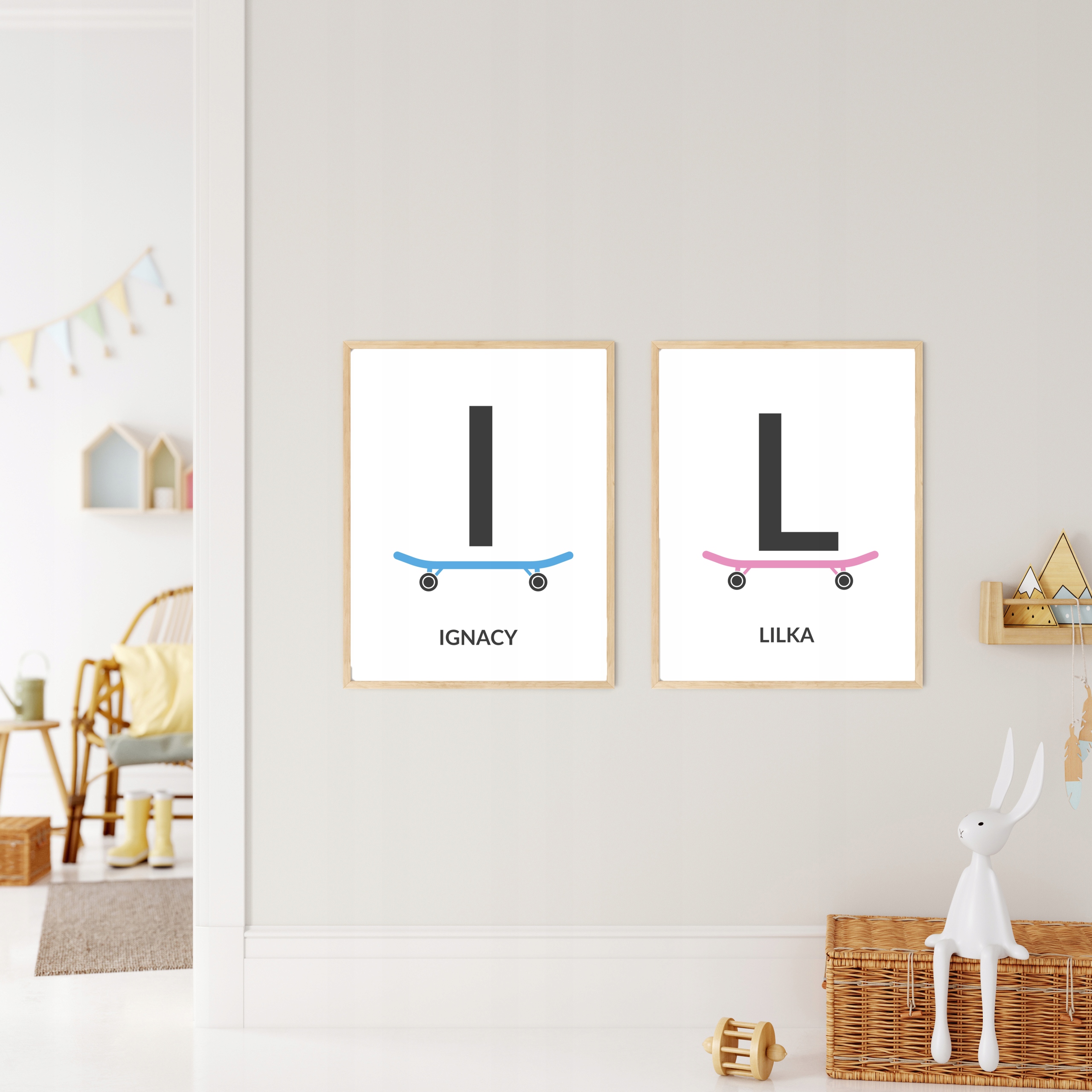 Мы предложите вам минималистичный плакат с первой буквой имени (или прозвища) вашего ребенка. Он красиво украсит современный интерьер, а также станет подарком ребенку по особому случаю. Это наверняка доставит массу радости многим молодым и старым скейтбордистам.