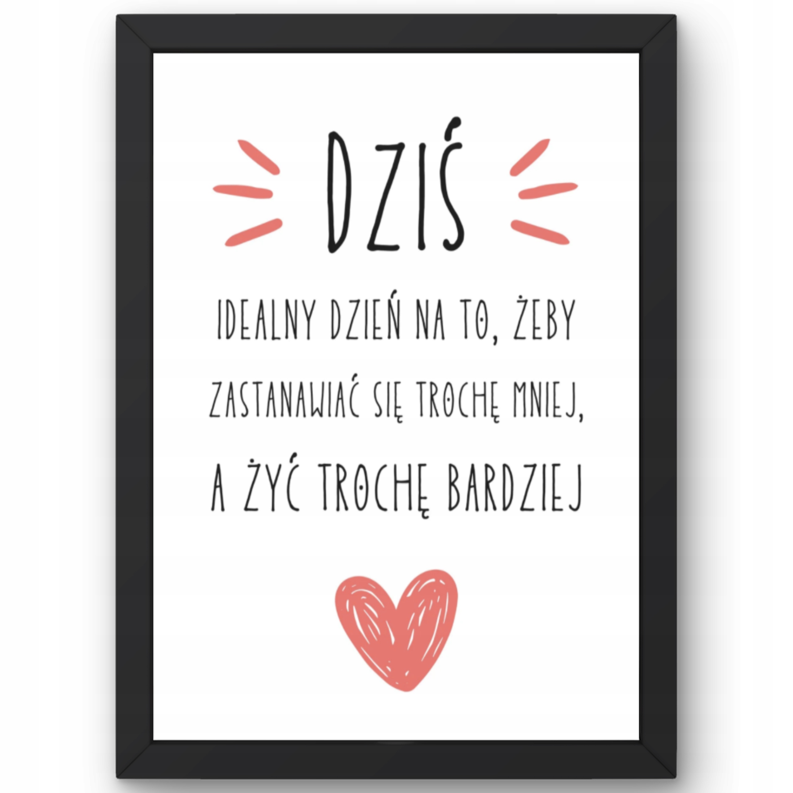 - Предложение распространяется на картину с надписью «Сегодня — идеальный день, чтобы меньше думать и чуть больше жить» в черной матовой раме (можно повесить или поставить ) размером