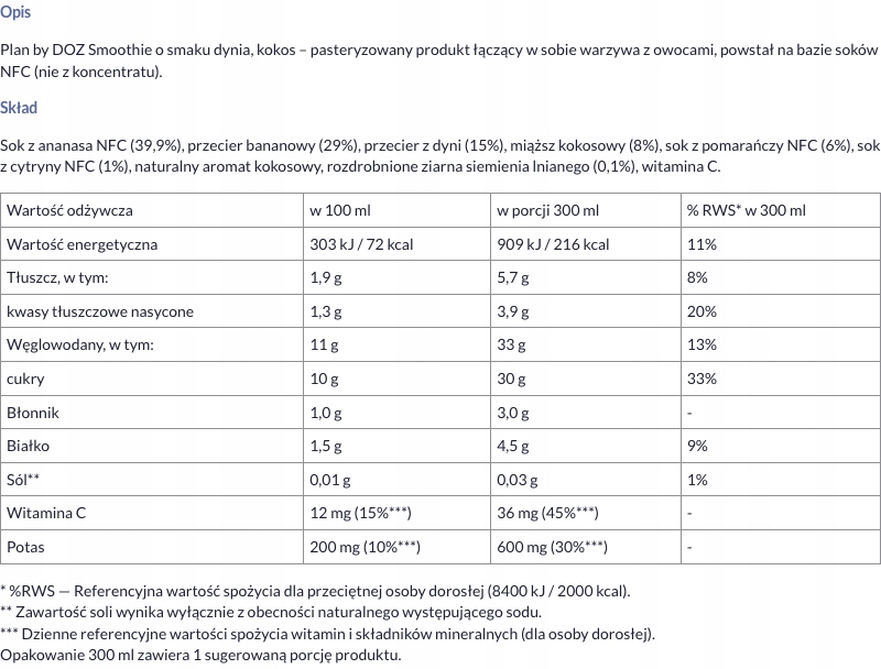 Plan by DOZ Smoothie, тыква, вкус кокоса, 300 мл