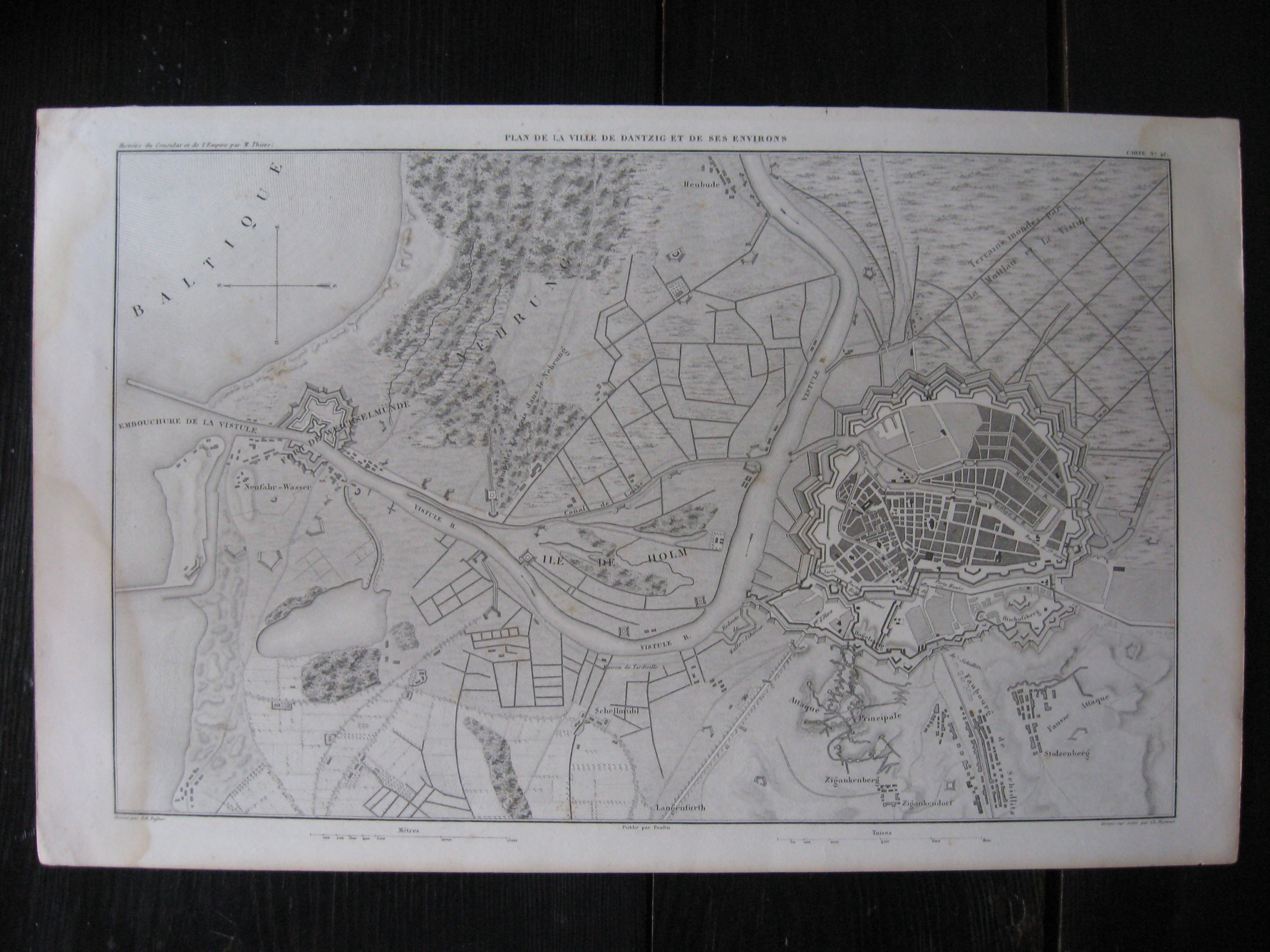 Plan de ville de dantzig [danzig] et de ses envions h1> gdańsk plan с картой области, Wisła ujście и Wisłujście Fort [Fort weichselmunde] h1>