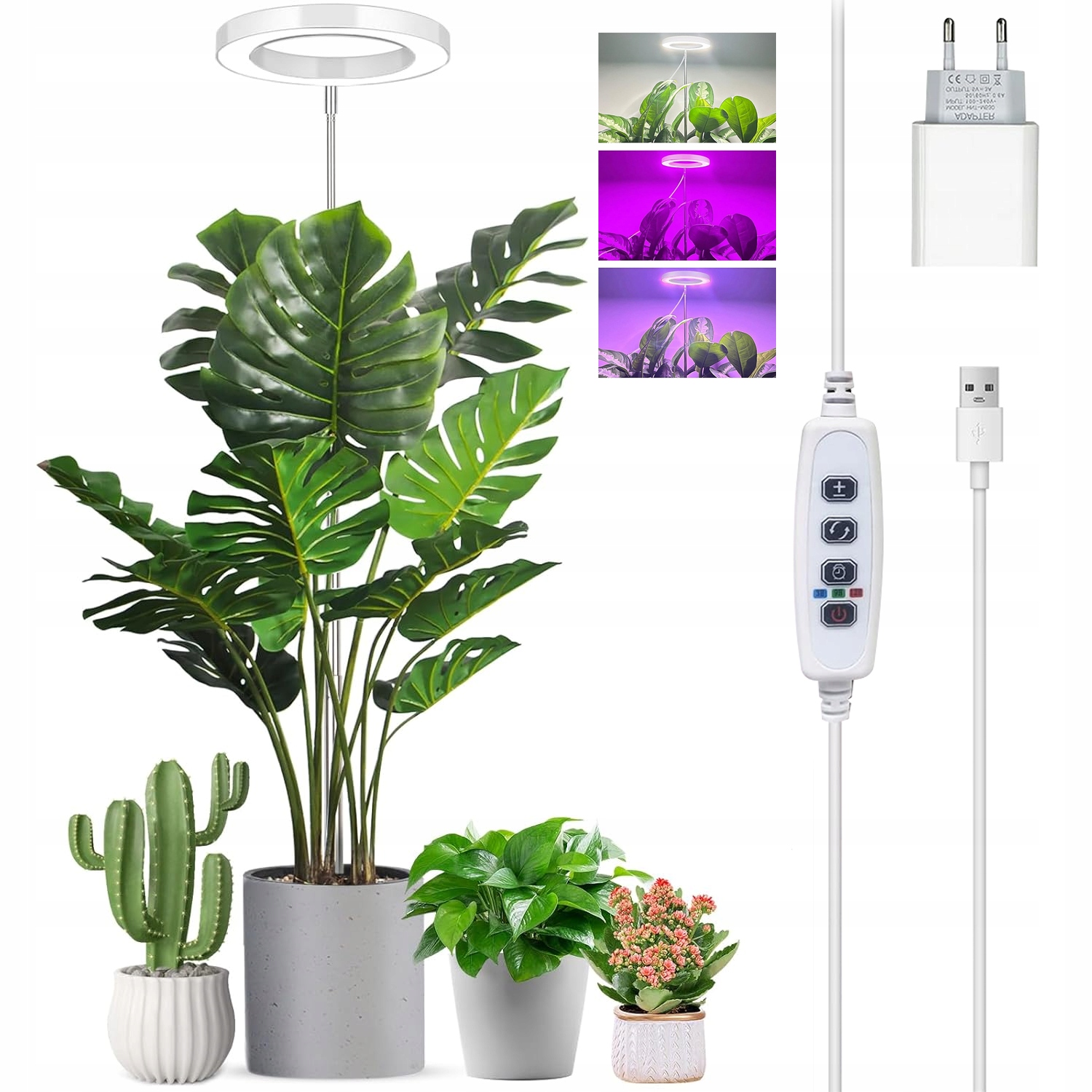 - 1 светодиодная кольцевая лампа для растений с USB-кабелем и контроллером