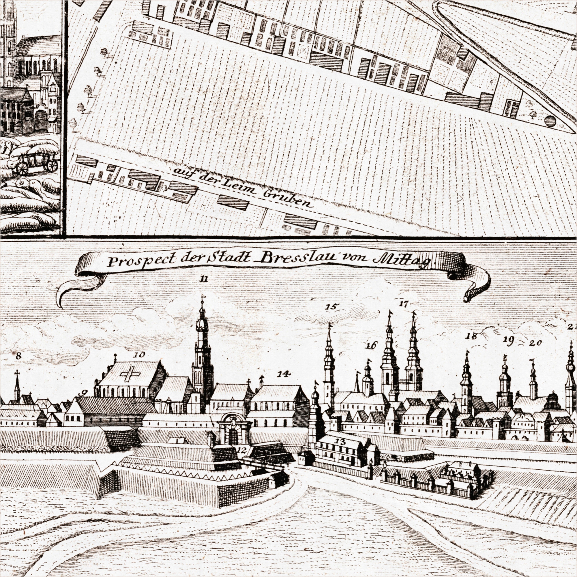 - Тема: план города Вроцлава, старая немецкая карта, 1750 г., картография
