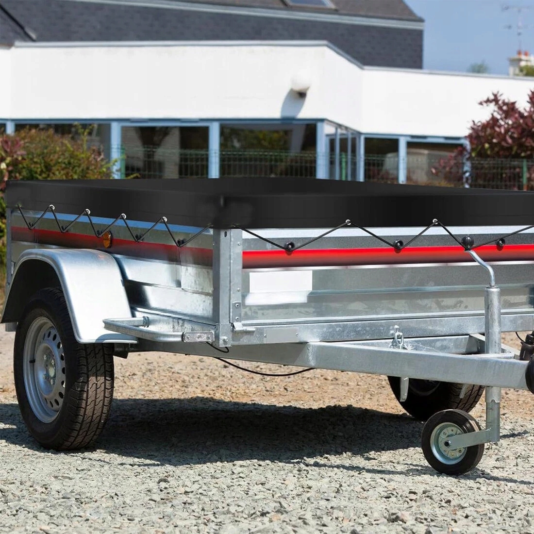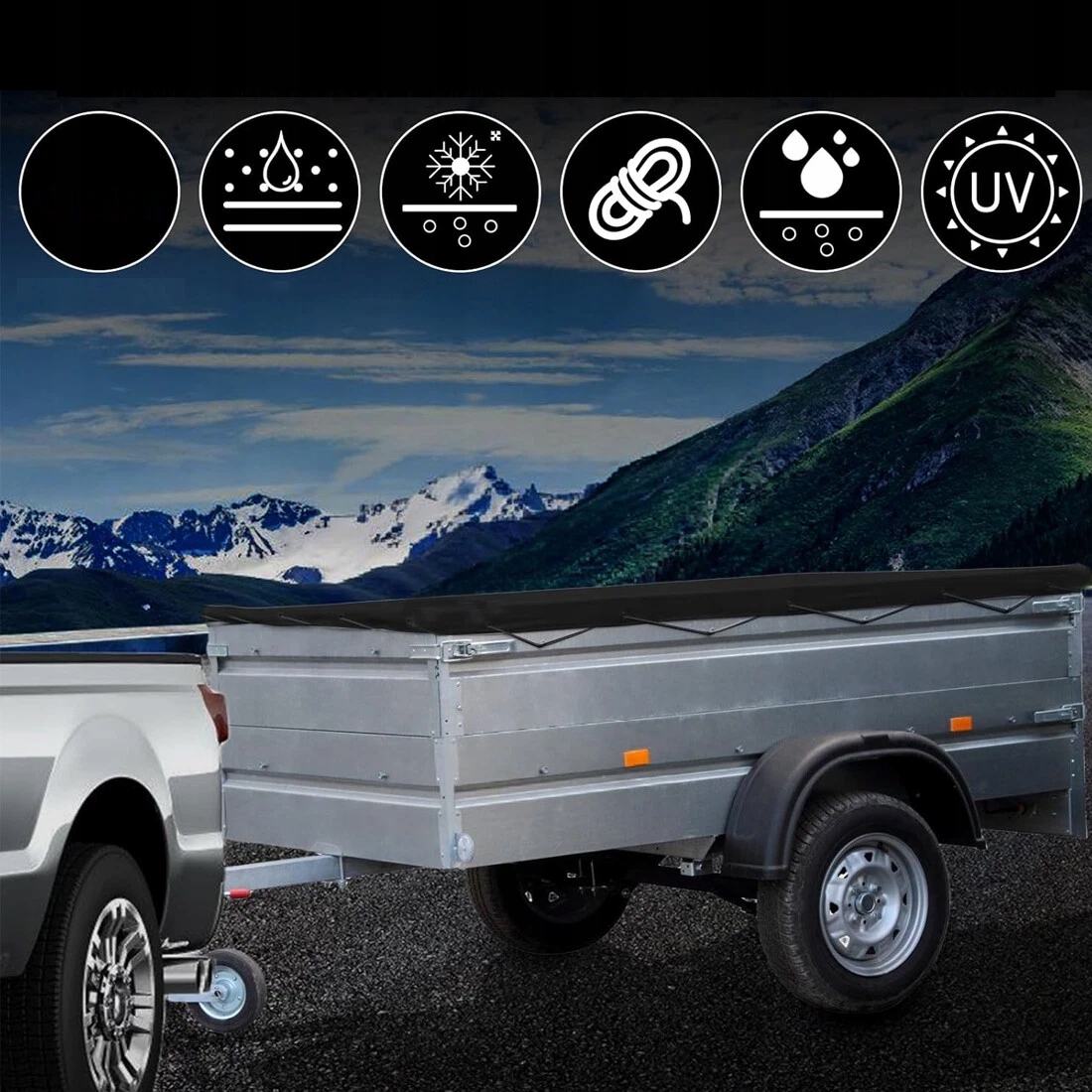 💧💧[Устойчивое крепление] -Брезент, оснащенный разнесенными металлическими проушинами и натяжным тросом, позволяет быстро и точно закрепить груз. Регулировка натяжения предотвращает сминание и прилипание материала к прицепу. Прочная конструкция обеспечивает безопасную транспортировку даже в сложных дорожных условиях.