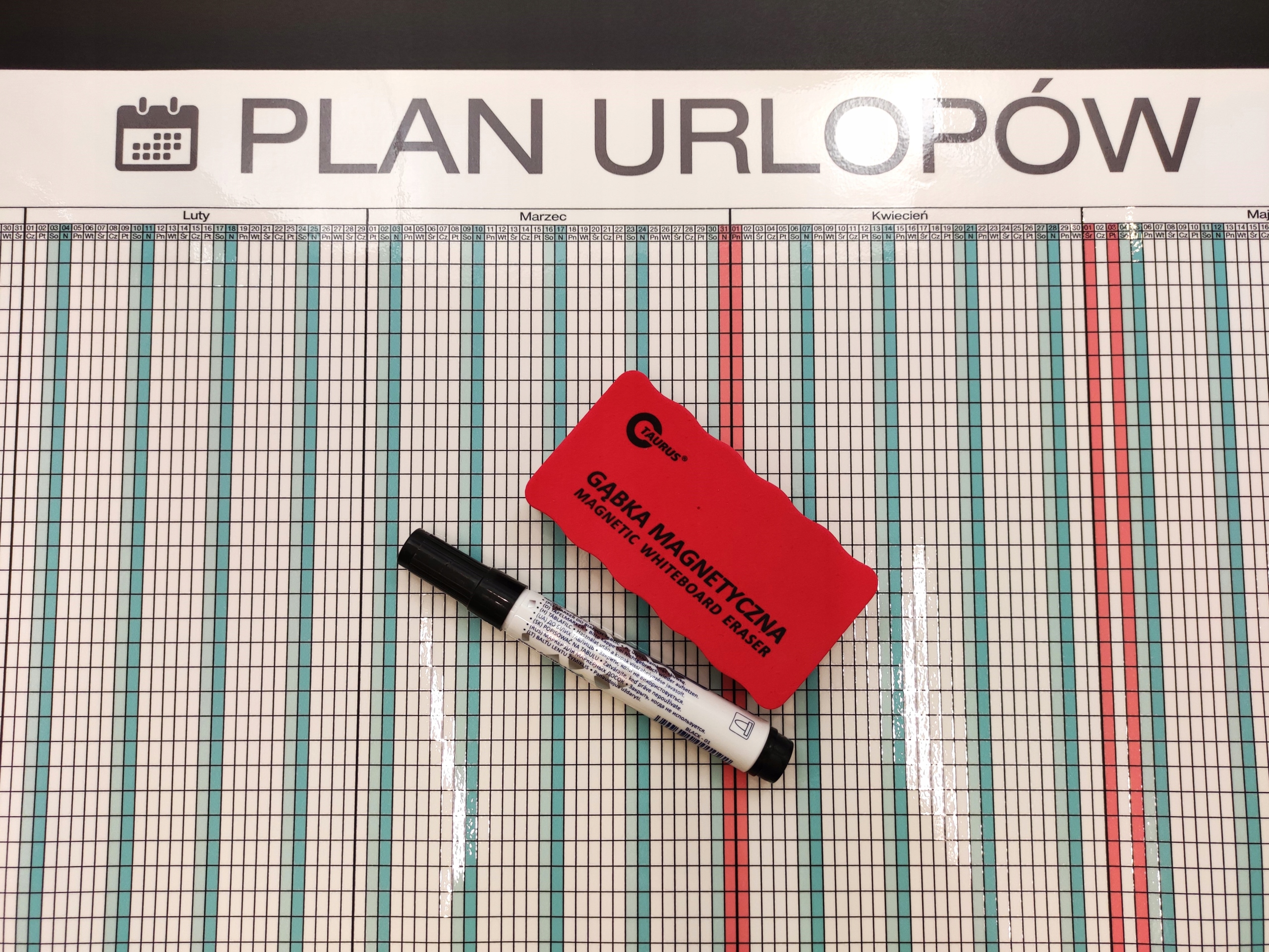 Планировщик отпуска на 2026 год сухостираемый B0 144x102 с самоклеющейся лентой