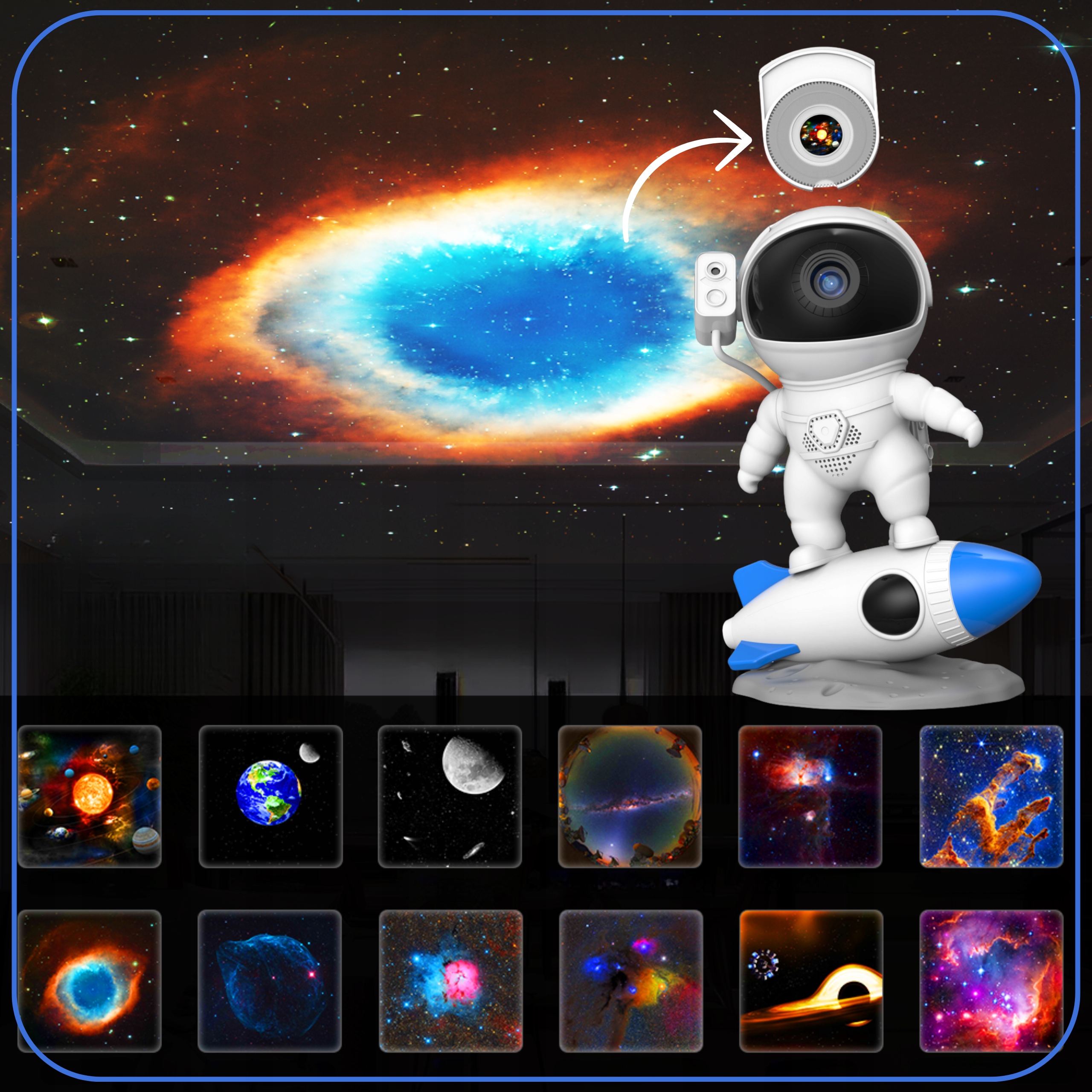 ✅ Благодаря 13 различным проекциям проектор Astronaut создает необыкновенные космические сцены, представляя реалистичные изображения в высоком разрешении. Вот некоторые из увлекательных тем, которые вы можете изучить: