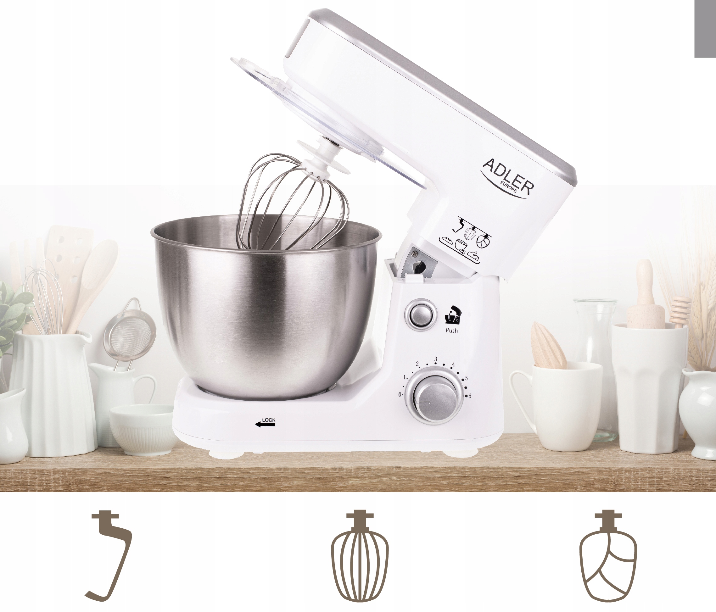 Планетарный робот ADLER AD 4216 — идеальный продукт для любителей выпечки. Кухонный комбайн, который практически самостоятельно смешивает все ингредиенты, не нужно держать в руках и оснащен миксерами, облегчающими работу на каждом этапе приготовления теста? Да! Наш продукт подойдет на любой кухне, стоит использовать его всего один раз, и он станет постоянным элементом техники! Дайте себе или своим близким немного места!