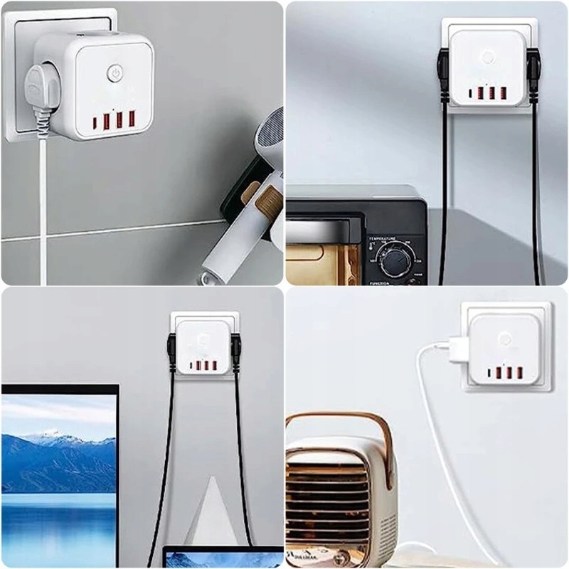 Полоса питания 3x куб переменного тока + 4X USB A + C Зарядное устройство