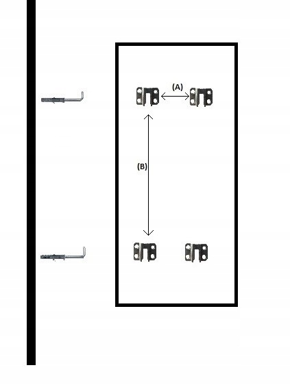 2. Дюбеля следует разместить в стене на расстоянии, соответствующем подвескам, установленным в маскировке, затем прикрутить к дюбелям крючки.