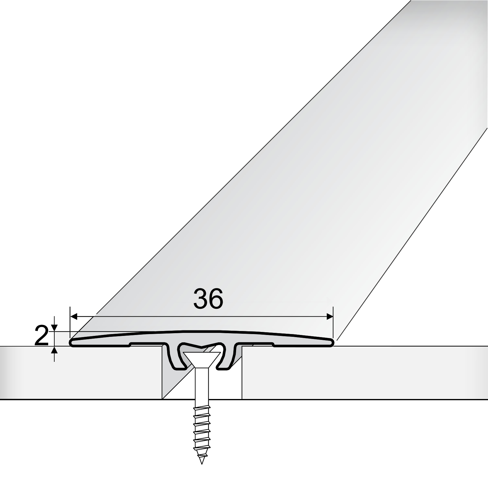 Быстрая монтажная полоса с силиконовым уплотнением. Прочный продукт, предназначенный для постоянного соединения полов на том же уровне, покрывающем зазоры между полами. Монтируется на колышках снизу, которые невидимы и стабильно прикрепляют его к земле. Он имеет силиконовую прокладку, чтобы предотвратить проникновение пыли под полосой.