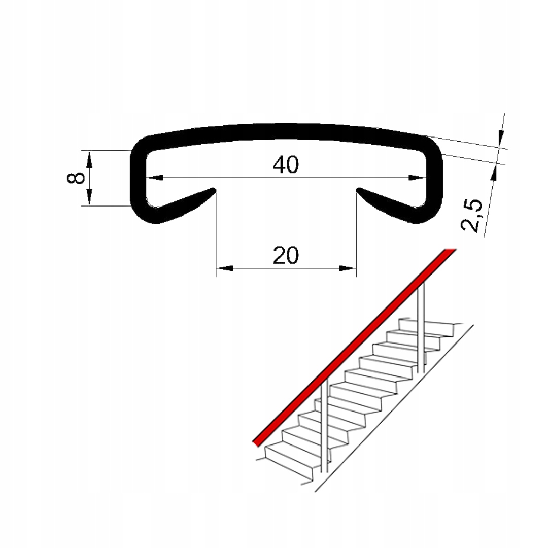 Поручень ЛП экономик 40/8 нашего производства представляет собой накладку ПВХ на планку лестничного перил шириной 40 мм и толщиной 5-8 мм.