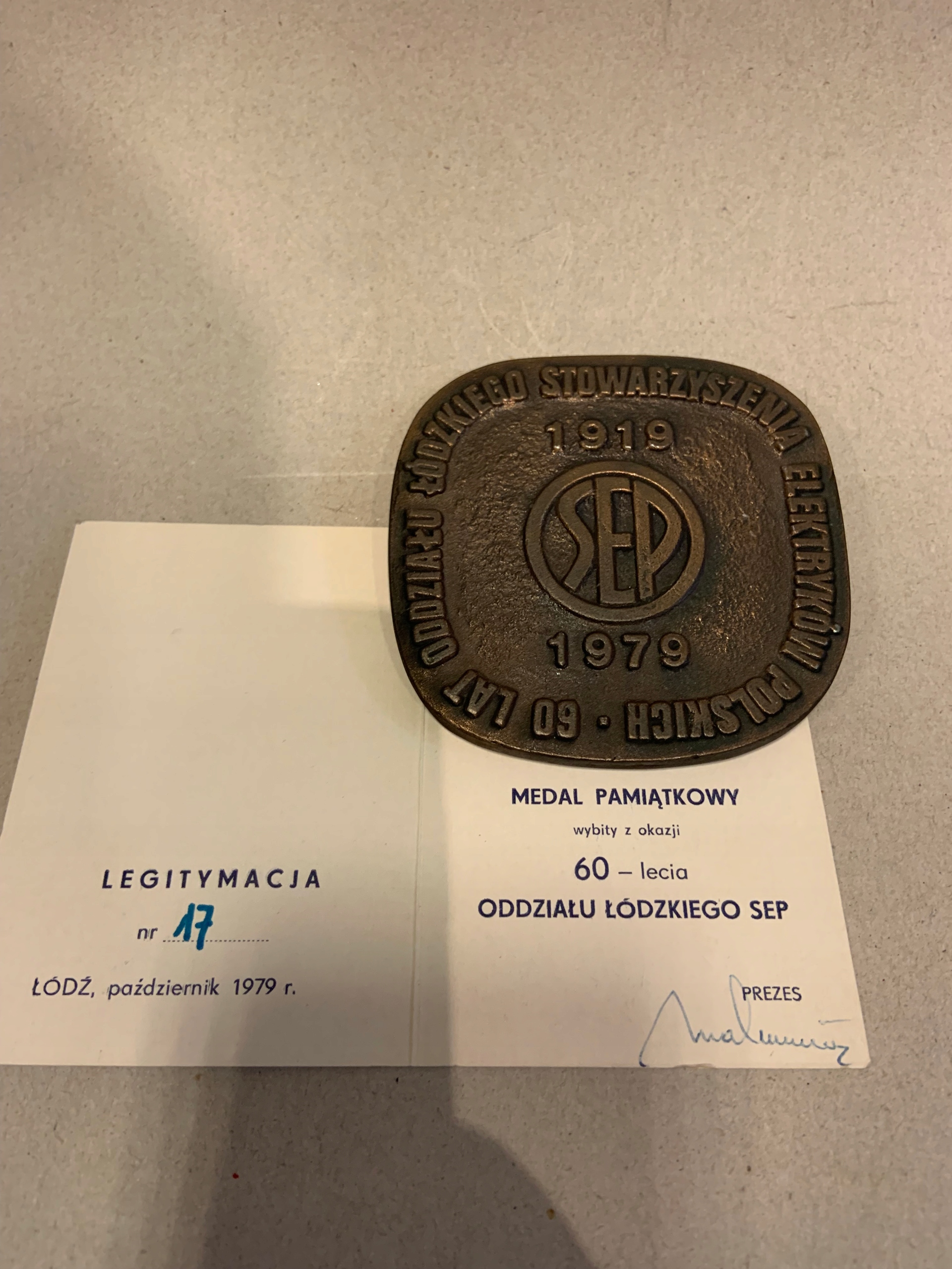 Планкада / памятная медаль 60 лет отделения Лодзи в сейп+удостоверение личности 79