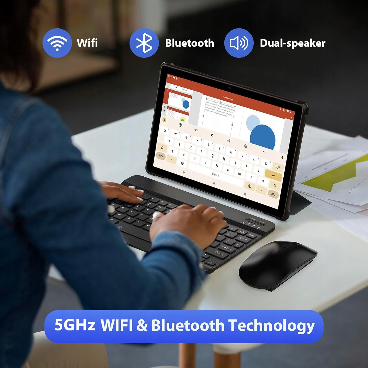 Тонкий дизайн заставляет пальцы скользить естественным и комфортно, благодаря которой они менее подвержены оставлению отпечатков пальцев и царапин. Приняв 10,1-дюймовый экран IPS с высоким разрешением 1280x800 с высоким разрешением, яркие и яркие изображения, отличный контраст и чистота, могут защитить зрение и быть безопасно используемым детьми. Очень быстрая Wi-Fi 802.11 A/B/G/N/AC (поддержка 2,4 ГГц/5 ГГц WiFi) и технология Bluetooth 5.0 обеспечивает большую мобильность