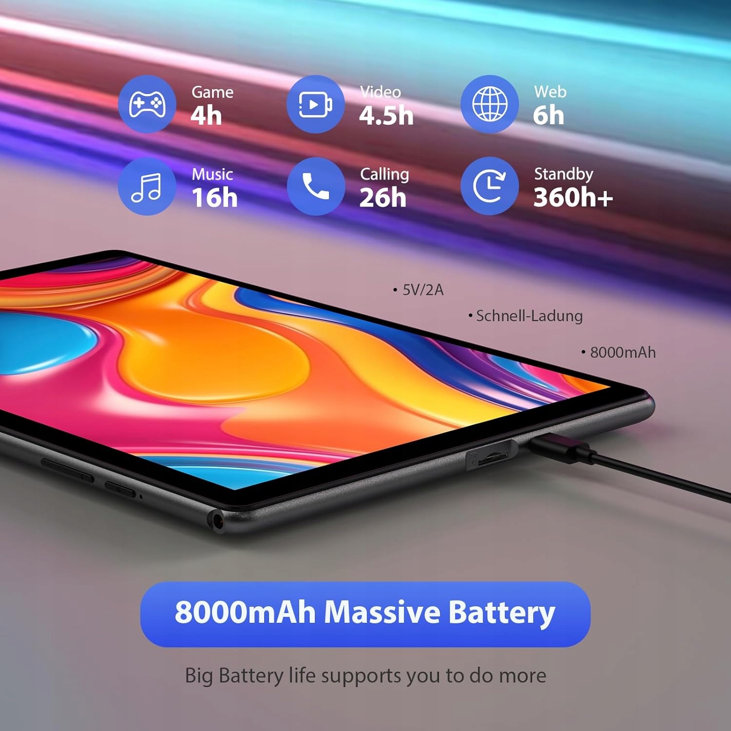 Батарея с высокой способностью 8000 мАч достаточно для обработки длительного удаленного обучения и бизнес -встреч. Стерео двойные динамики обеспечивают идеальный опыт при просмотре видео и онлайн -общения в социальных сетях. Идеальная упаковка может быть использована в качестве подарка для семьи и друзей на Рождество, День святого Валентина, вечеринки по случаю дня рождения и различные случаи