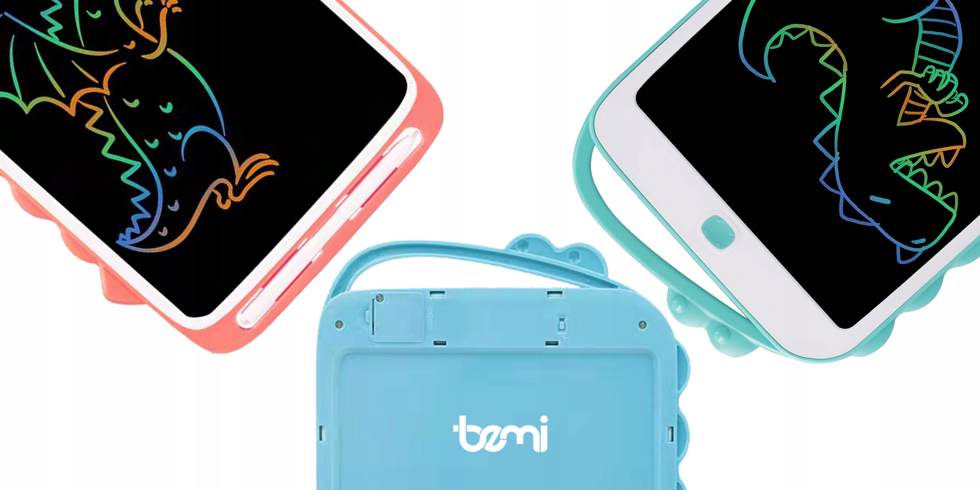 Bemi Doodle оснащен 10-дюймовым многоцветным ЖК-экраном, на котором вы можете свободно писать или рисовать с помощью прилагаемого стилуса. Экран реагирует на нажатие.