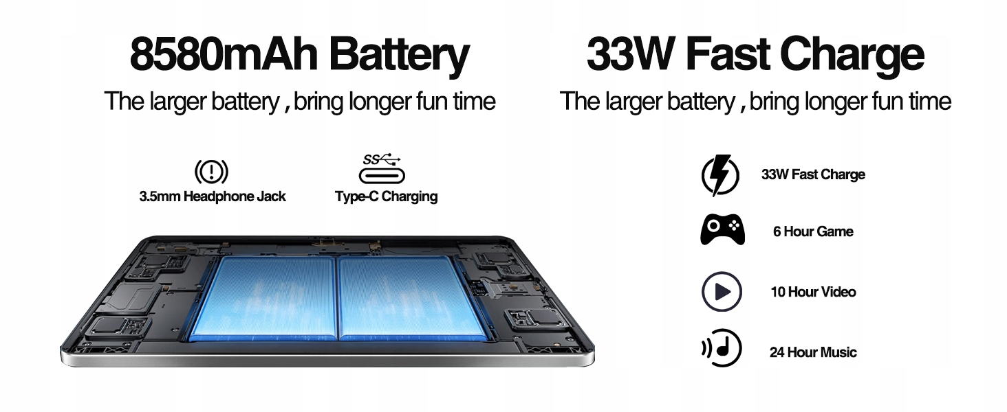 Супераккумулятор емкостью 8580 мАч обеспечивает чрезвычайно комфортное время автономной работы. Небольшой корпус с супербатареей подарит вам невероятные впечатления
