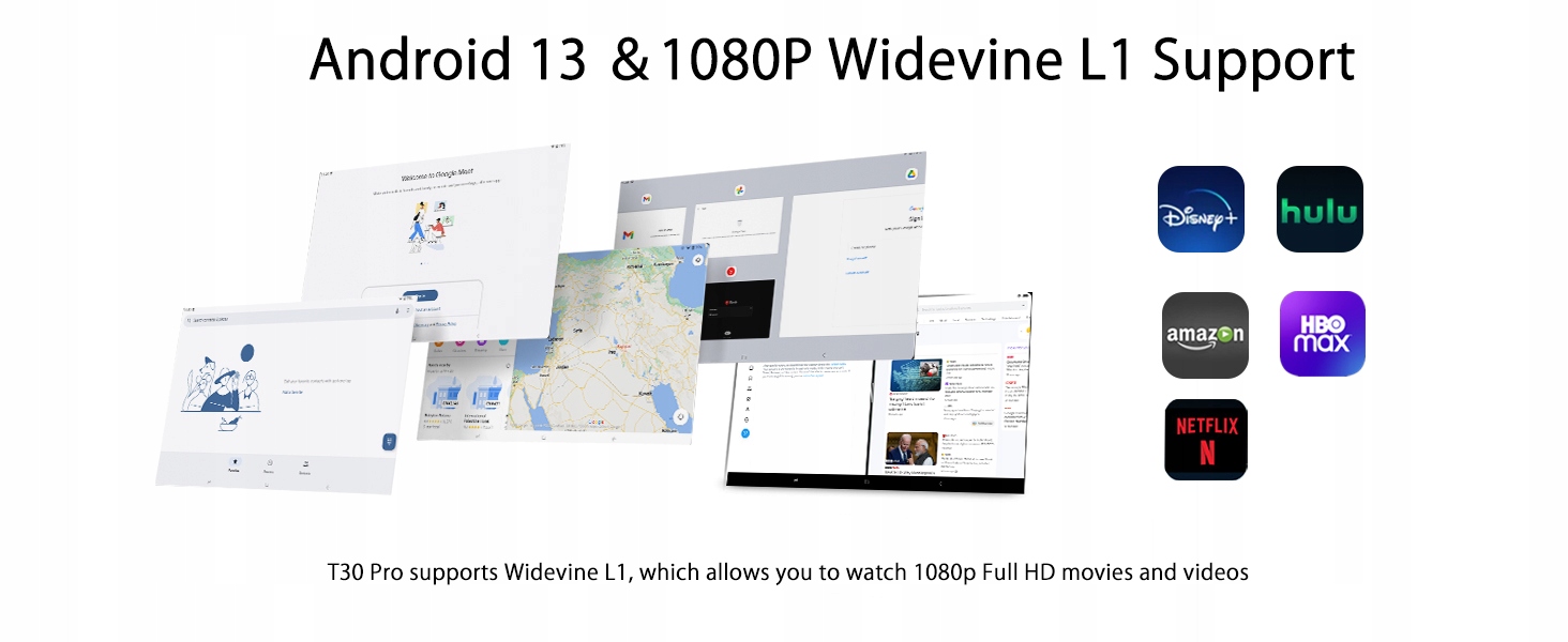 в Android 13 для повышения производительности и конфиденциальности планшета. В этой версии вы можете включить полный сервис Google, который предлагает такие приложения, как Netflix, Disney+, Tiktok, Roblox и YouTube. 2023 г. Новый планшет на базе Android 13 сертифицирован GMS и позволяет видеть странную рекламу.