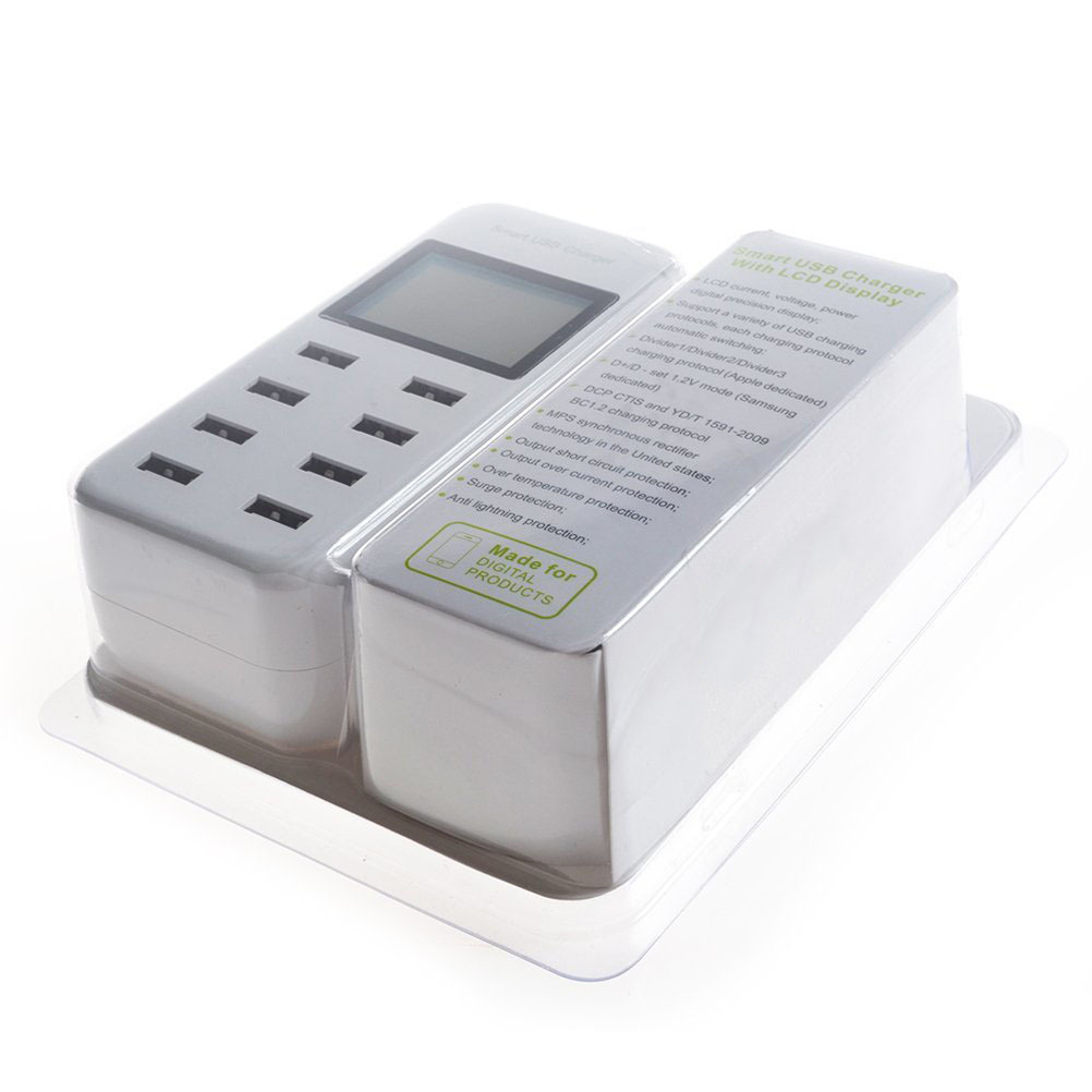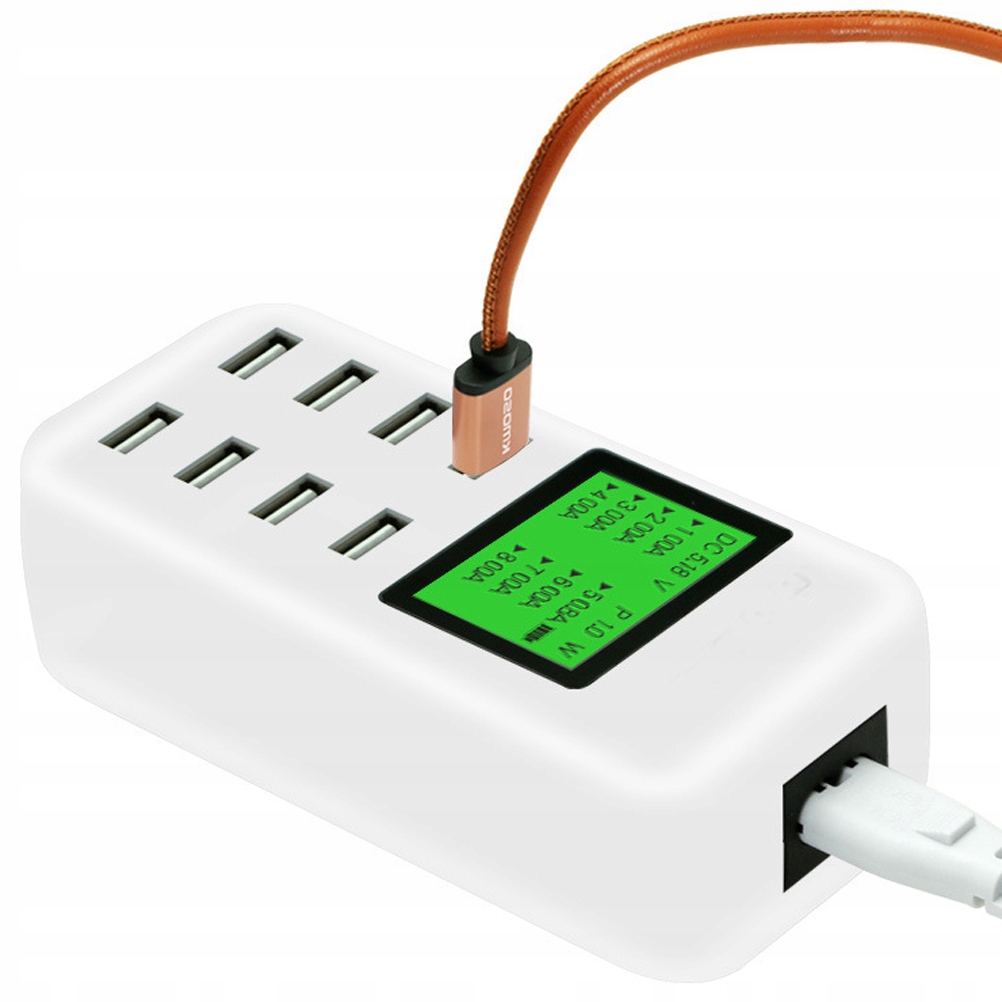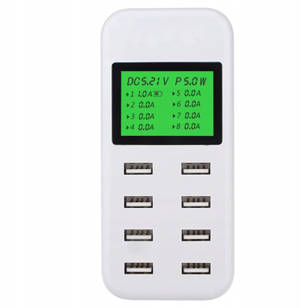 1 x 8-портовое USB-зарядное устройство, ЖК-дисплей 5 В/8 А, портативная USB-зарядная станция для мобильных телефонов и планшетов (вилка)