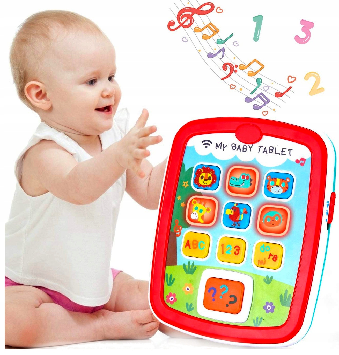 Привлекательная игрушка имеет реалистичный вид и 10 больших кнопок, на которые ребенок может легко нажимать. Каждая кнопка отвечает за разные функции: от звуков животных, букв, цифр до вопросов. Игрушка оправдает ожидания каждого современного малыша. Планшет запрограммирован на английском языке, поэтому ваш ребенок будет иметь с ним постоянный контакт с первых месяцев.