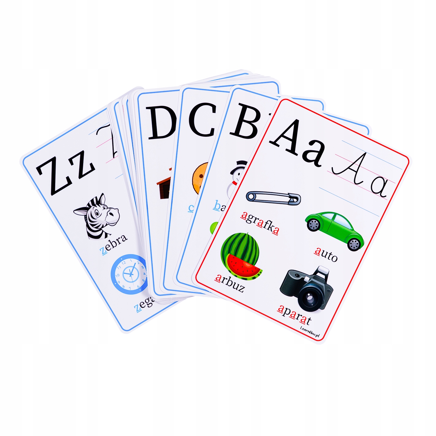 PLANSZE EDUKACYJNE KARTY OBRAZKOWE - ALFABET (litery) - 23 karty - LearnHow