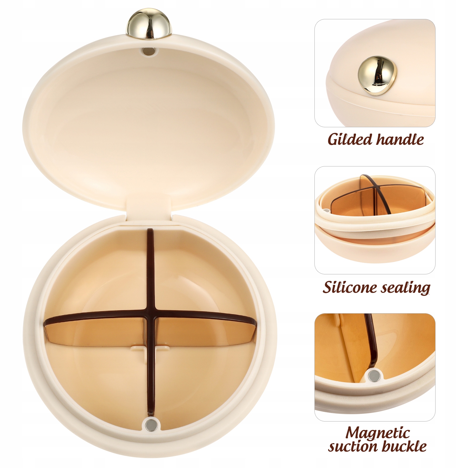 Плотная застежка, предотвращающая выпадение таблеток. Различные лекарства можно хранить в четырех разных отделениях, чтобы поддерживать чистоту.