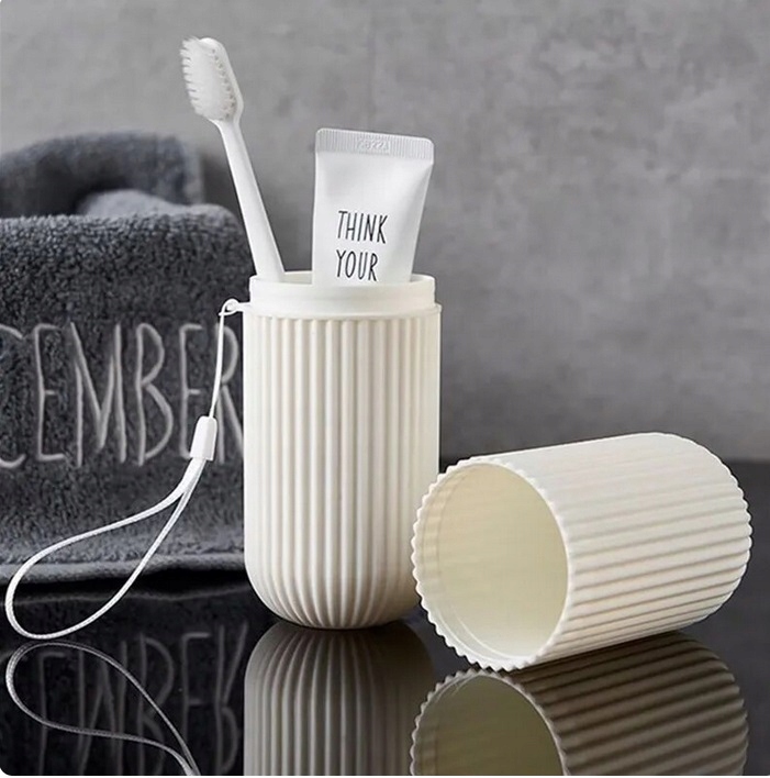 - Очень удобно, потому что благодаря поводку вы можете повесить на крючке, вешалку в ванной комнате или Запястье. Контейнер для кисти и пасты