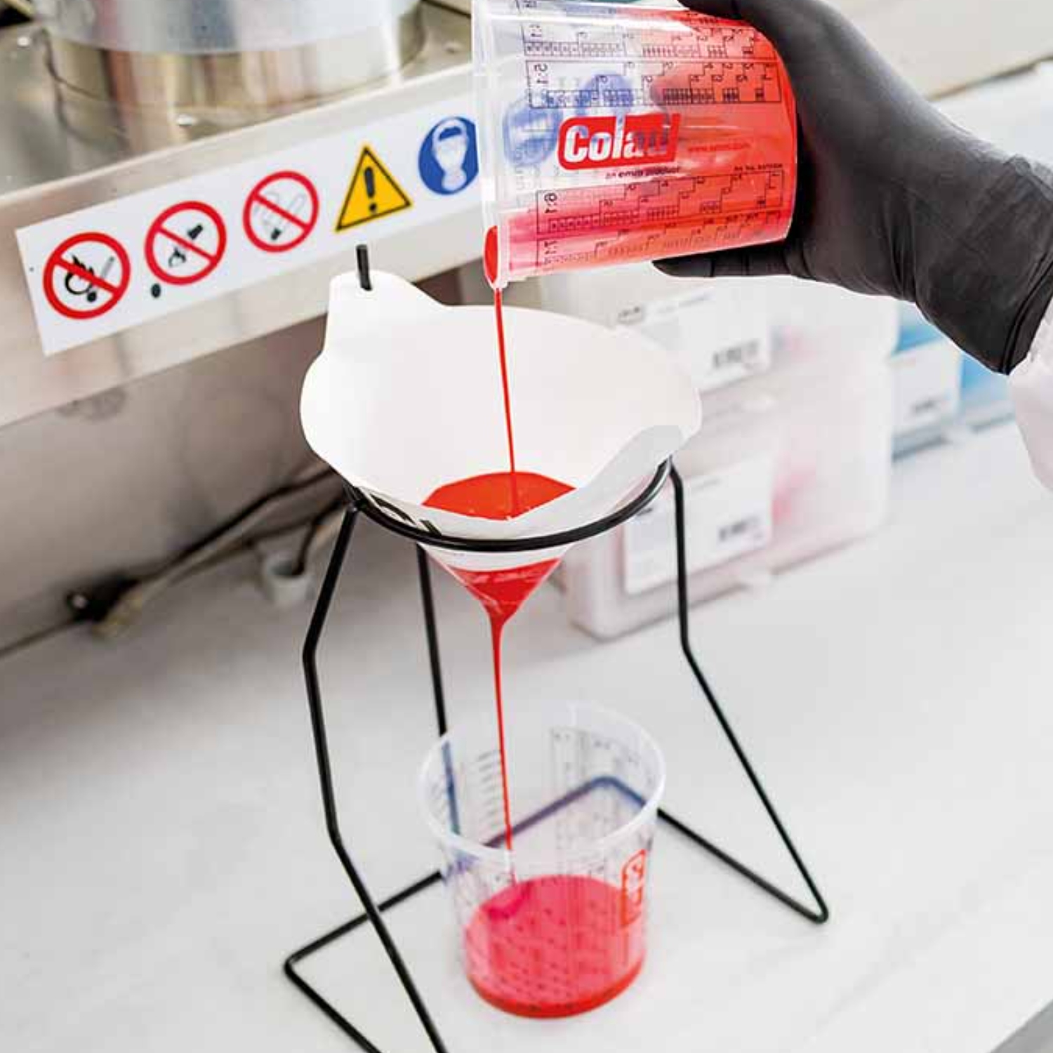 Коладные лаки смешивающие чашки изготовлены из специального высококачественного полипропилена, что обеспечивает им неизменную жесткость и прозрачность. Это гарантирует хорошую видимость и читаемость шкалы с долю смешивания как в внутренней части чашки, так и снаружи