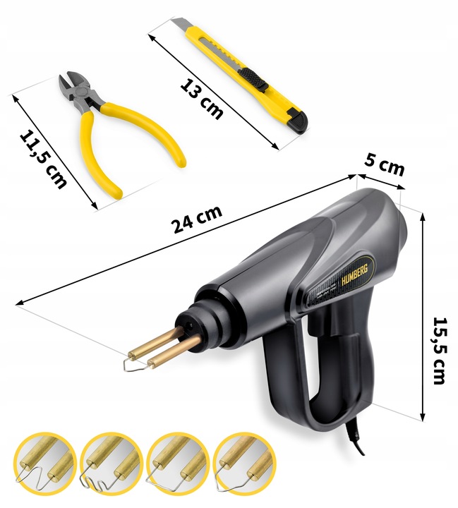 - Благодаря различным советам и скобам, сварщик позволяет ремонтировать Много типов пластмасс и различных типов повреждений . Время нагрева, сварщик, он готов к использованию почти сразу . >
