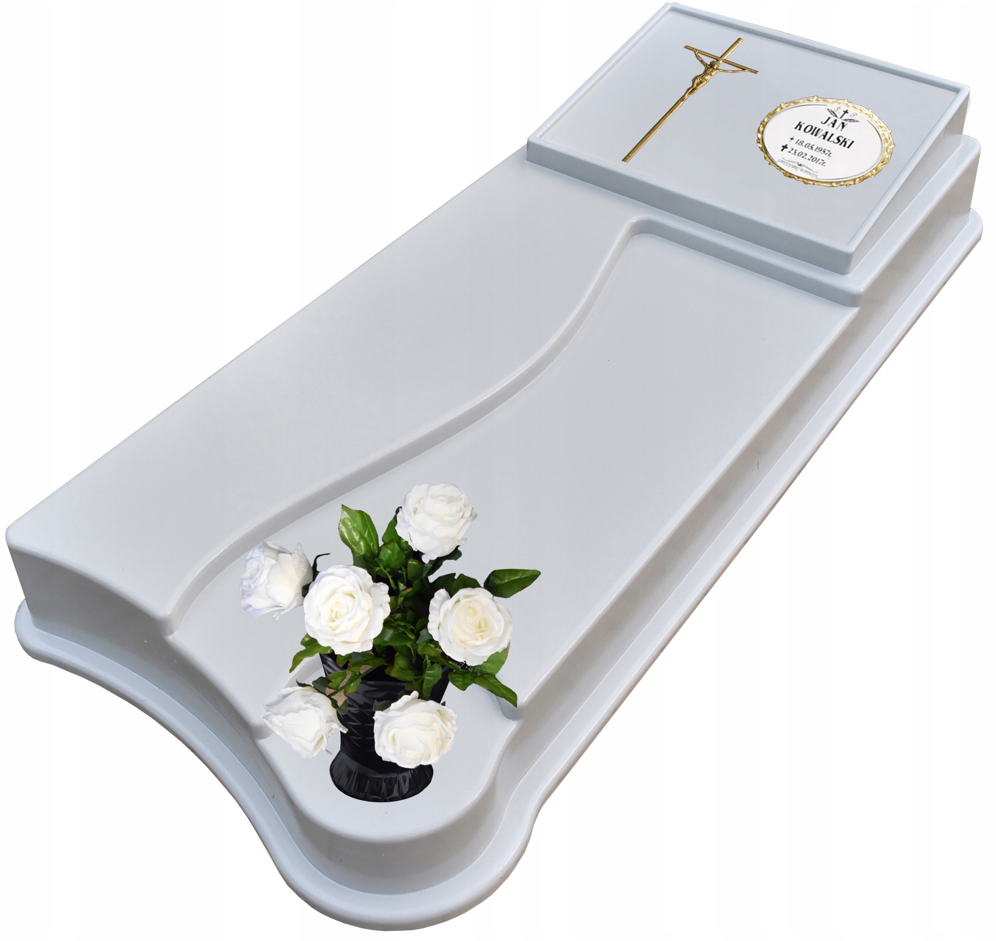 Кладбищенский памятник из пластика выполняет функцию каменного надгробия. Это идеальная альтернатива традиционному каменному памятнику. Материал, из которого изготовлено изделие, отличается высокой устойчивостью к погодным условиям, УФ-лучам, низким температурам и механическим повреждениям.