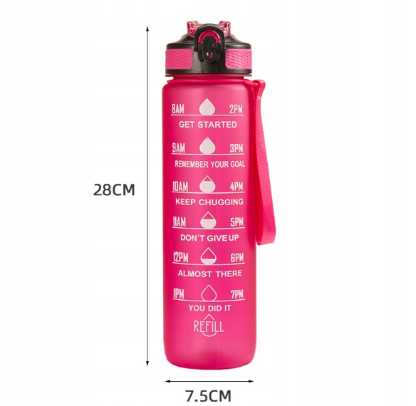 Питье правильное количество воды является основой здорового образа жизни. Благодаря нашей бутылке с мотивационным масштабом ежедневная гидратация становится проще и вдохновляющей! Масштаб в часах и мотивационные цитаты помогут вам поддерживать оптимальный уровень гидратации в течение дня. Уход за здоровьем с нами - это чистое удовольствие!