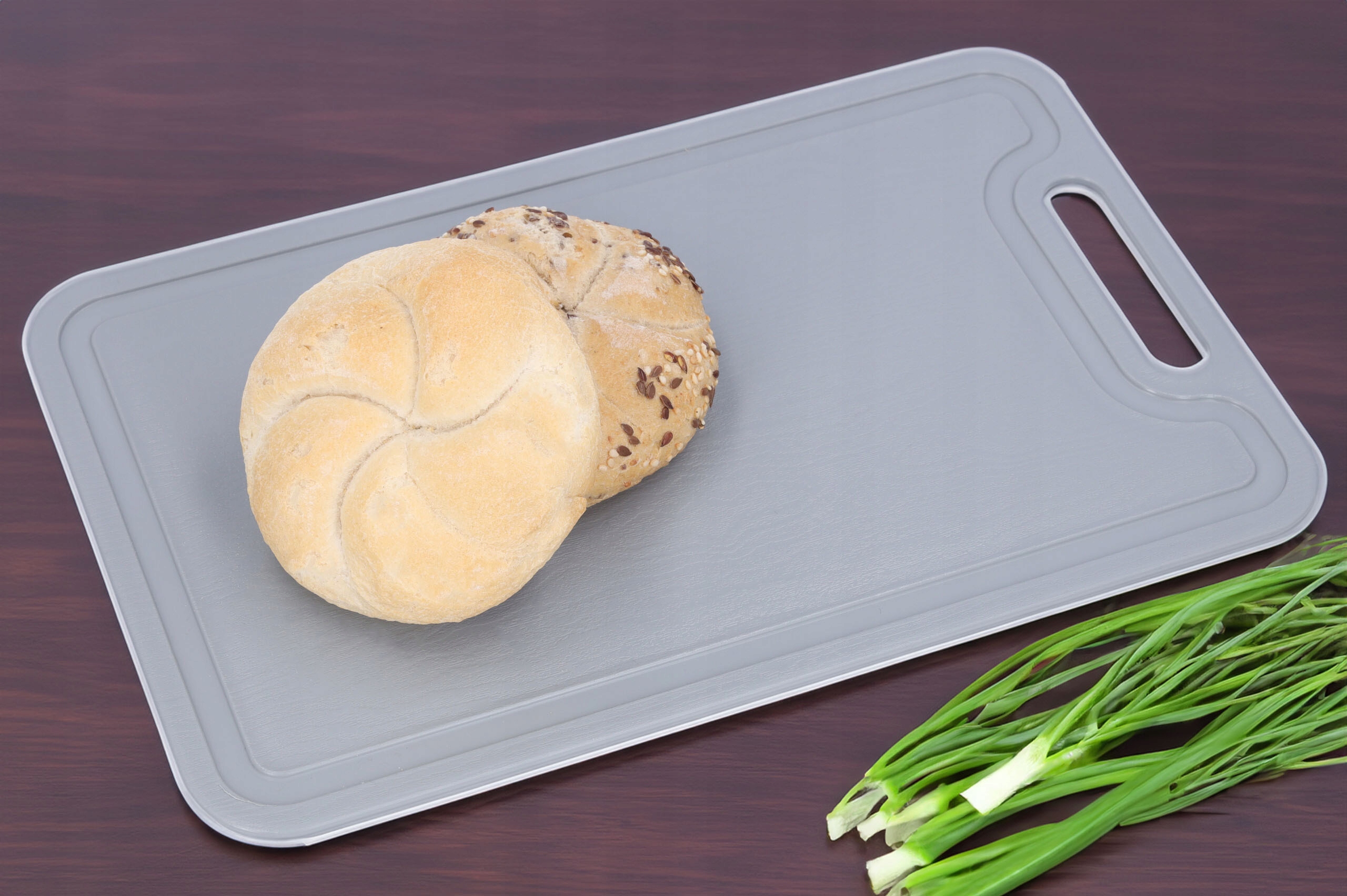 Пластиковая нарезая кухня пластиковая сплошная серая 31x19 см.
