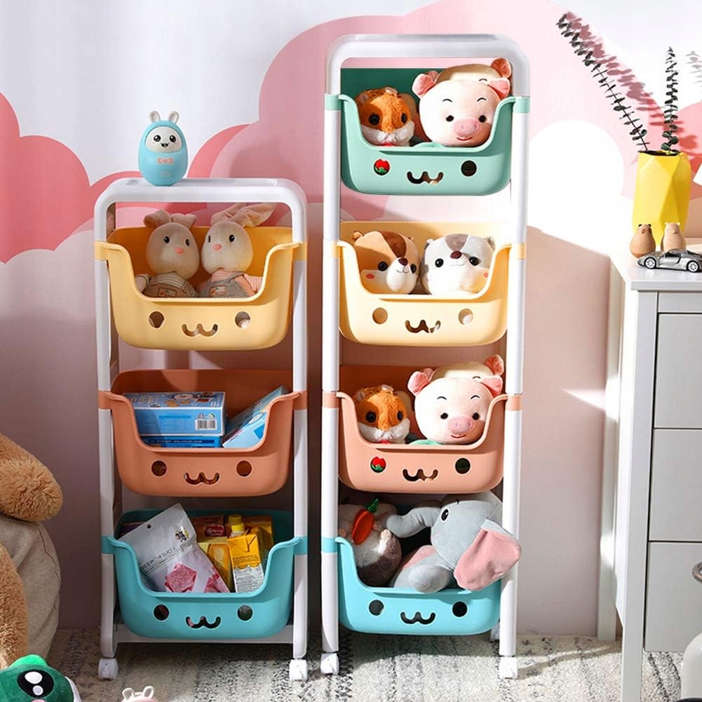 ПЛАСТИКОВЫЙ ШКАФ ДЛЯ ИГРУШЕК КОНТЕЙНЕР НА КОЛЕСАХ КНИЖНЫЙ ШКАФ С 4 ПОЛКАМИ