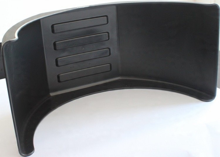 Предмет продажи — брызговик, подходящий для колес диаметром 15 и 16 дюймов. Изготовлен из высококачественного пластика. Это делает колесные арки устойчивыми к царапинам и повреждениям. Дополнительное тиснение вверху. Ширина колесной арки составляет 450 мм, длина – 920 мм, высота – 460 мм.
