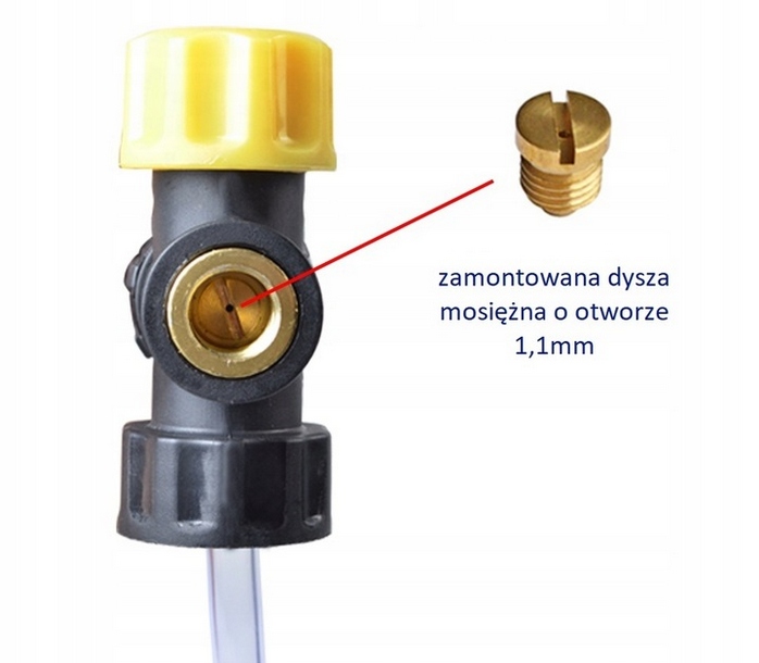 Аппликатор для пены имеет регулируемый угол струи воды с помощью пены и количества химического введения. Он крепится к пистолету, благодаря чему мы обходим внутреннюю циркуляцию в моечной машине и агрессивные химикаты не попадают в контакт с компонентами стиральной машины, исключая угрозу повреждения, например, головки насоса.