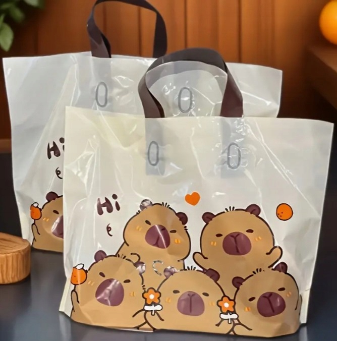 Очаровательные подарки с Kapibar - Прочные пластиковые пакеты с ручками для вечеринок, покупки и подарки! 1 ПК �