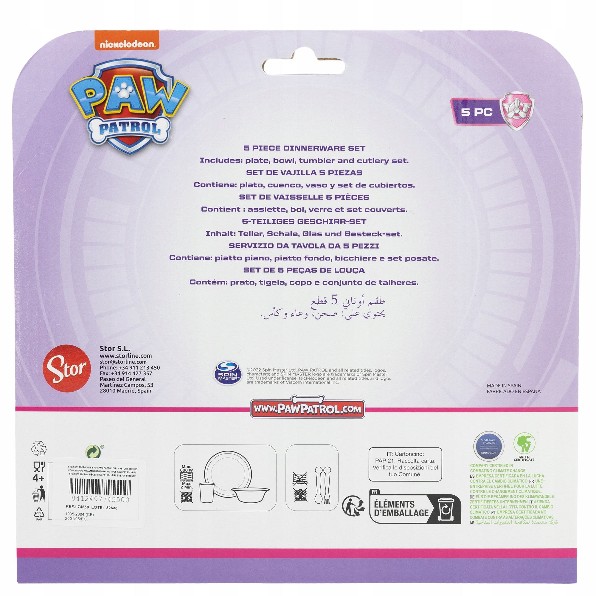 Очаровательный и практичный ужин для маленьких поклонников собачьего патруля! Набор включает в себя тарелку, миску, столовые приборы и чашку, украшенную разноцветной графикой любимых героинов сказки - Skye и Everest. Сделано из высокого качества, безопасного материала для детей, он идеально подходит как дома, так и во время еды в детском саду или на пикнике. cm