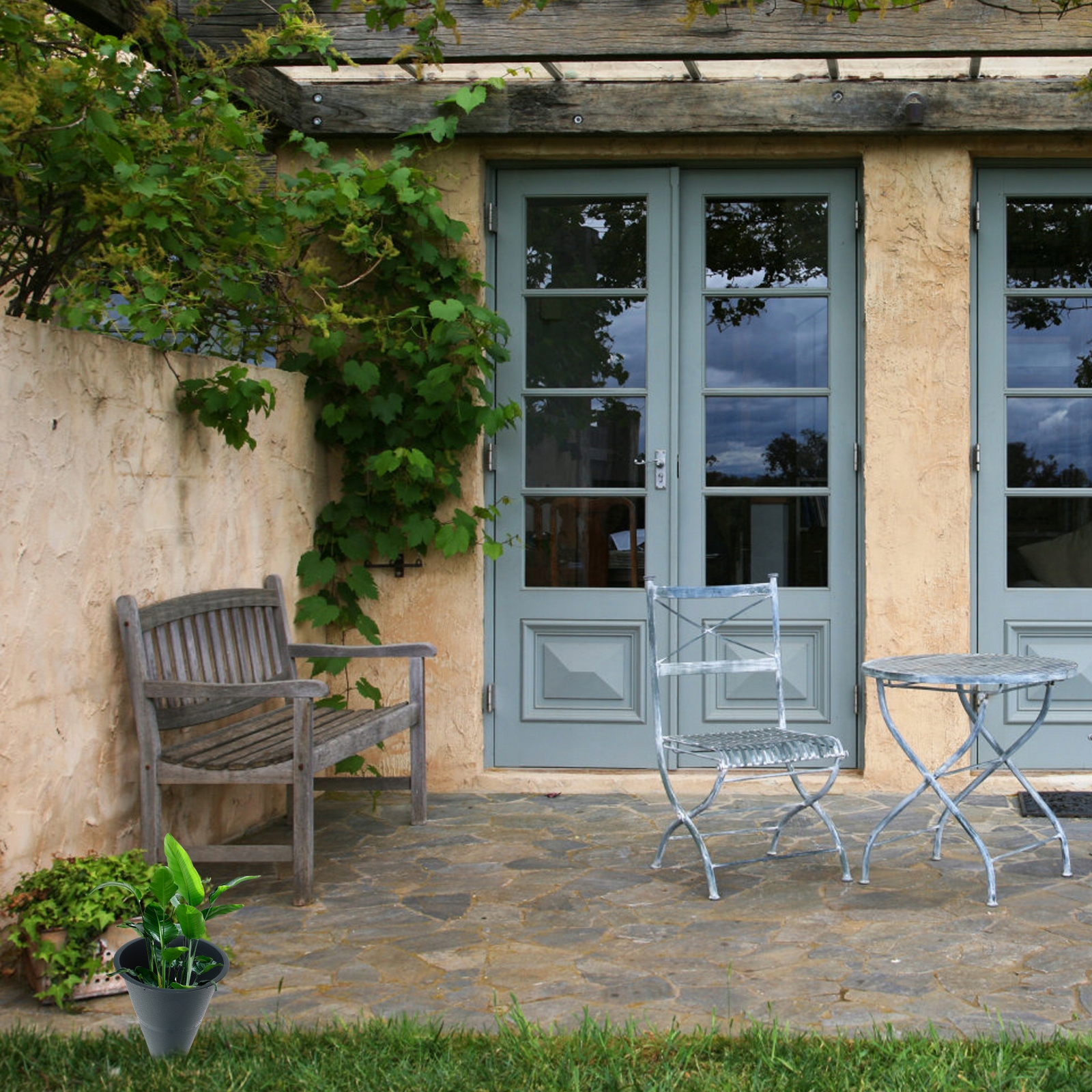 Эта ваза конусовидной формы изготовлена из пластика и подходит для суровых погодных условий.
