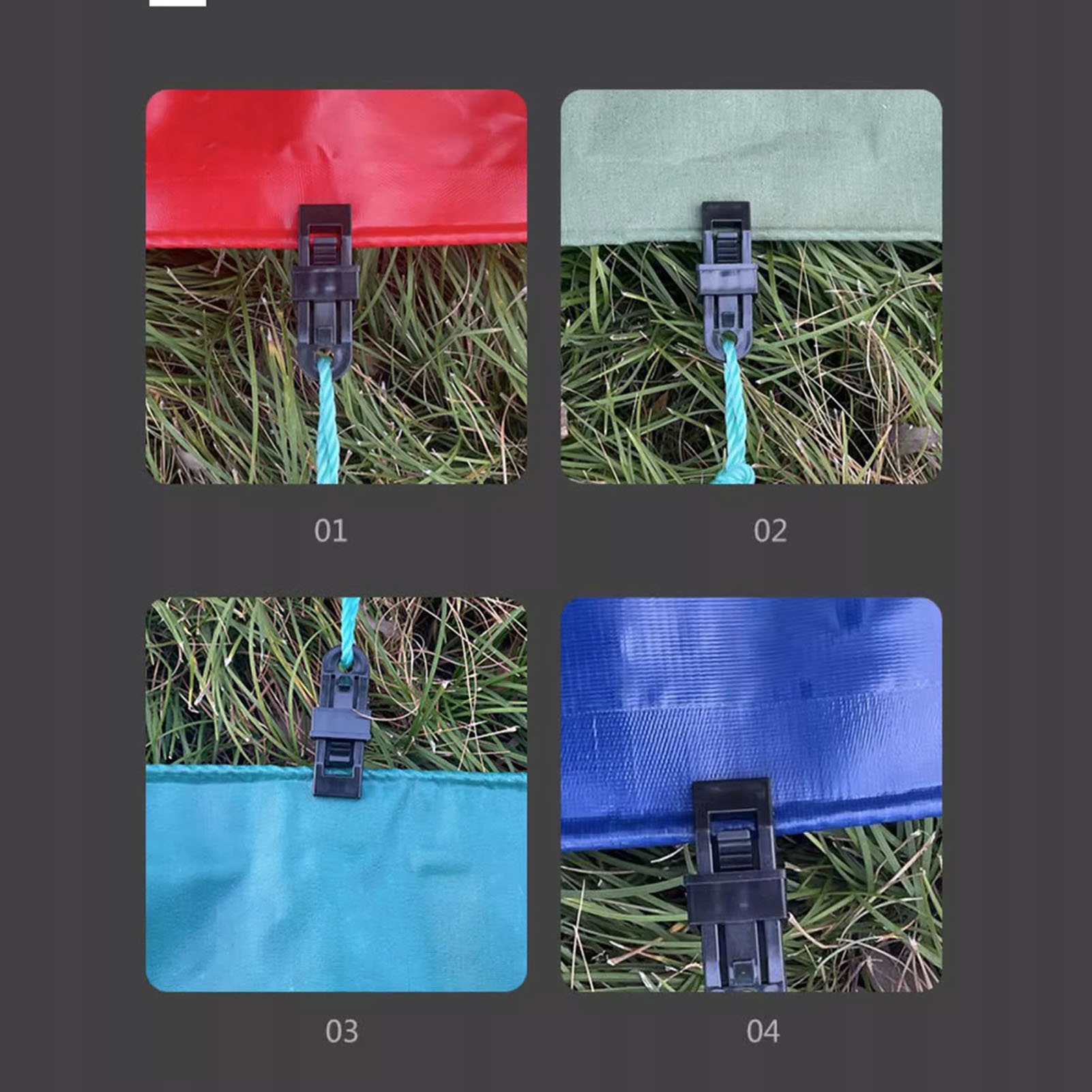 2. ПРОЧНЫЕ ЗАЖИМЫ: надежно удерживают палатку и эффективно повышают ее устойчивость, предотвращая тряску или разрушение палатки под воздействием ветра.