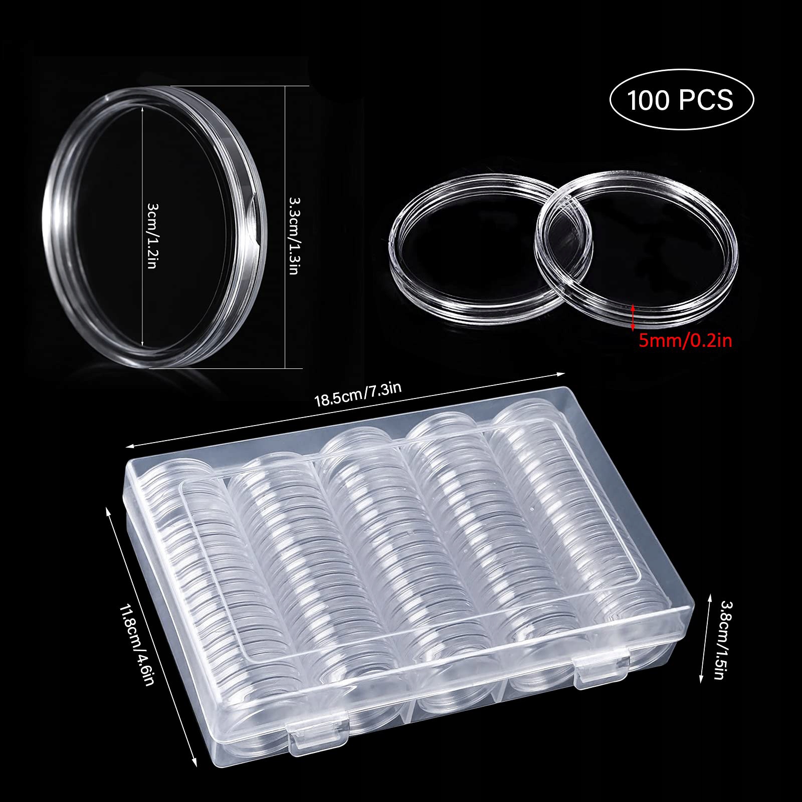 - Этот комплект защиты монет содержит 100 штуккапсул для монет диаметром 30 мм b >, 1 прозрачная коробка для хранения и 100 соответствующих уплотнений из ЭВА. Практичный подарок для коллекционеров, позволяющий хранить и защищать свои любимые монеты.