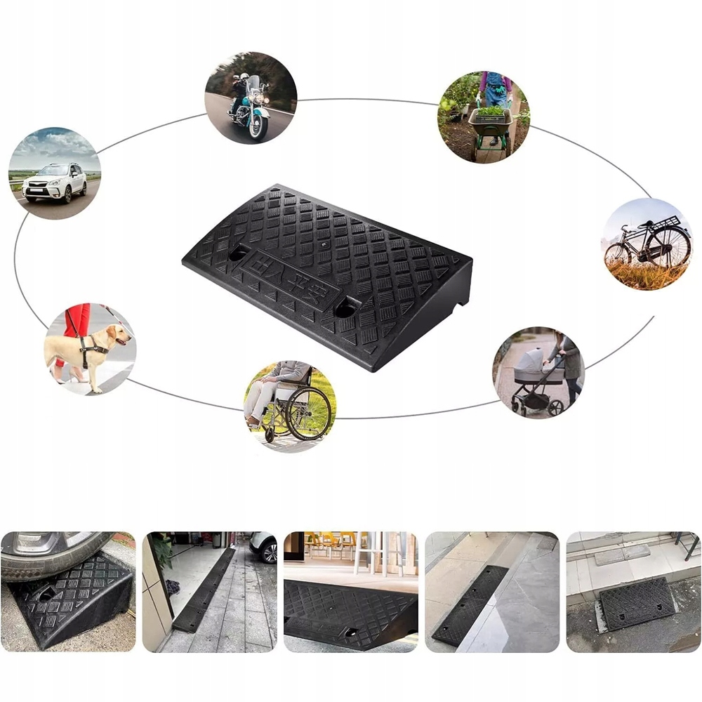 Этот прочный и легкий пандус – идеальное решение для легковых автомобилей, внедорожников, фургонов, инвалидных колясок, мотоциклов, велосипедов, скутеров и транспортных тележек. Благодаря ему вы легко преодолеваете бордюры и приподнятые тротуары!